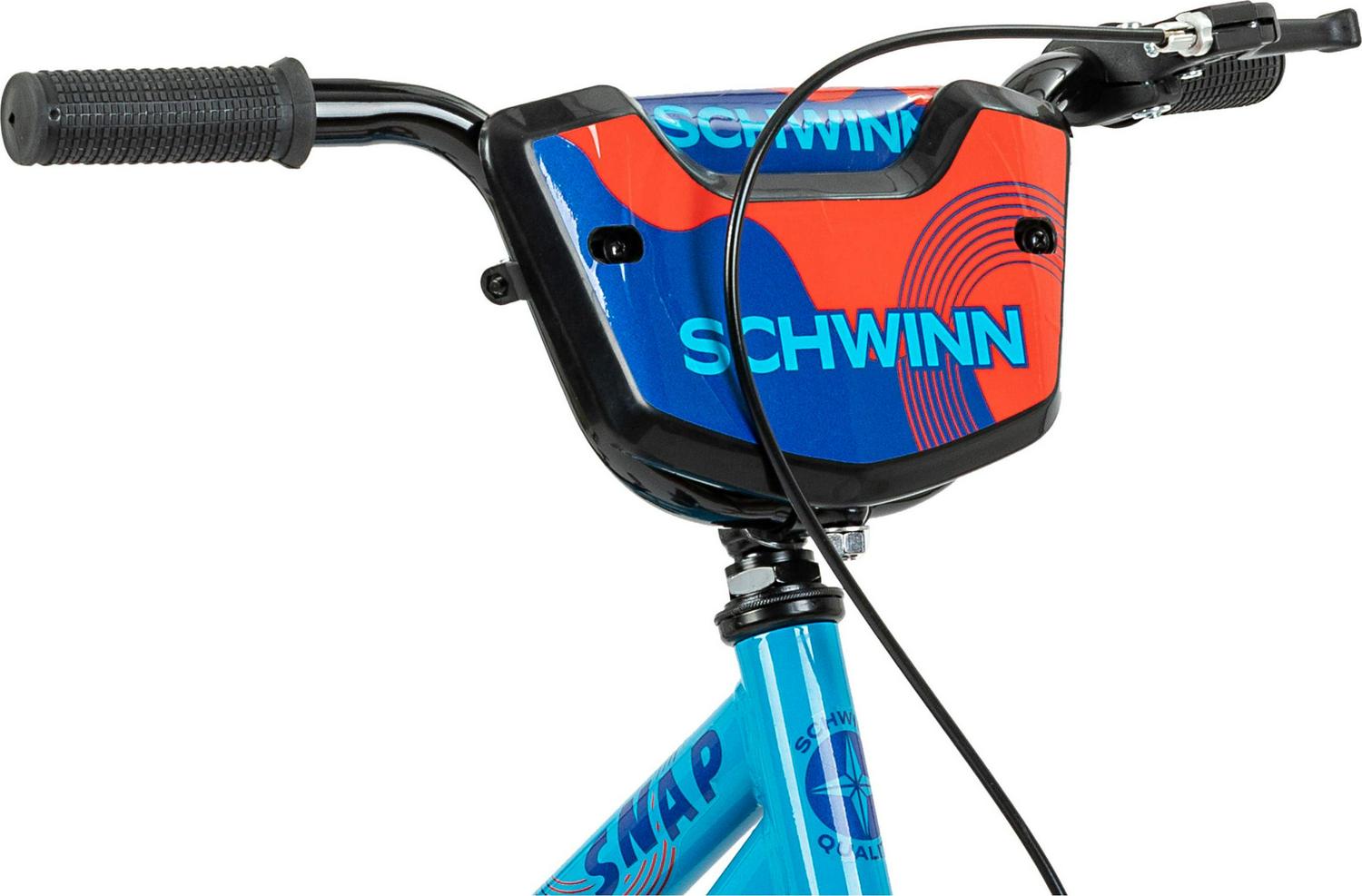 Outdoor fun is a snap the Snap, Kids bike by Schwinn that is! Perfect for riding around the neighborhood with friends and family, the Snap includes SmartStart Technology for fun that fits. Every SmartStart bike is tailor-made to kids proportions because a better fit leads to faster learning and more confident riding. That means a lighter frame, gearing designed for easier starting, narrower pedal positions, and smaller grips and seats. The Snap also comes with both rear coaster brake and front caliper brake; easing the transition to a bigger, hand-brake-only bike when they’re ready. Removable training wheels provide extra stability, while a tool-free adjustable seat post makes it easy to fine-tune the fit. Plus, the handlebar number plate adds an awesome racing style.View more from us on our brand page.