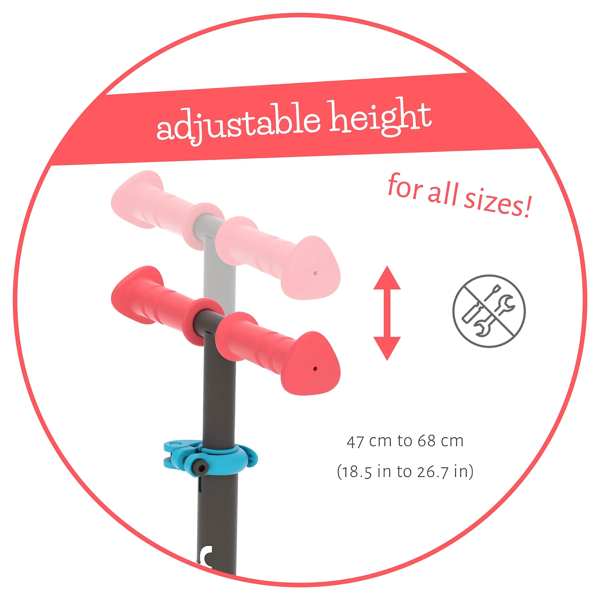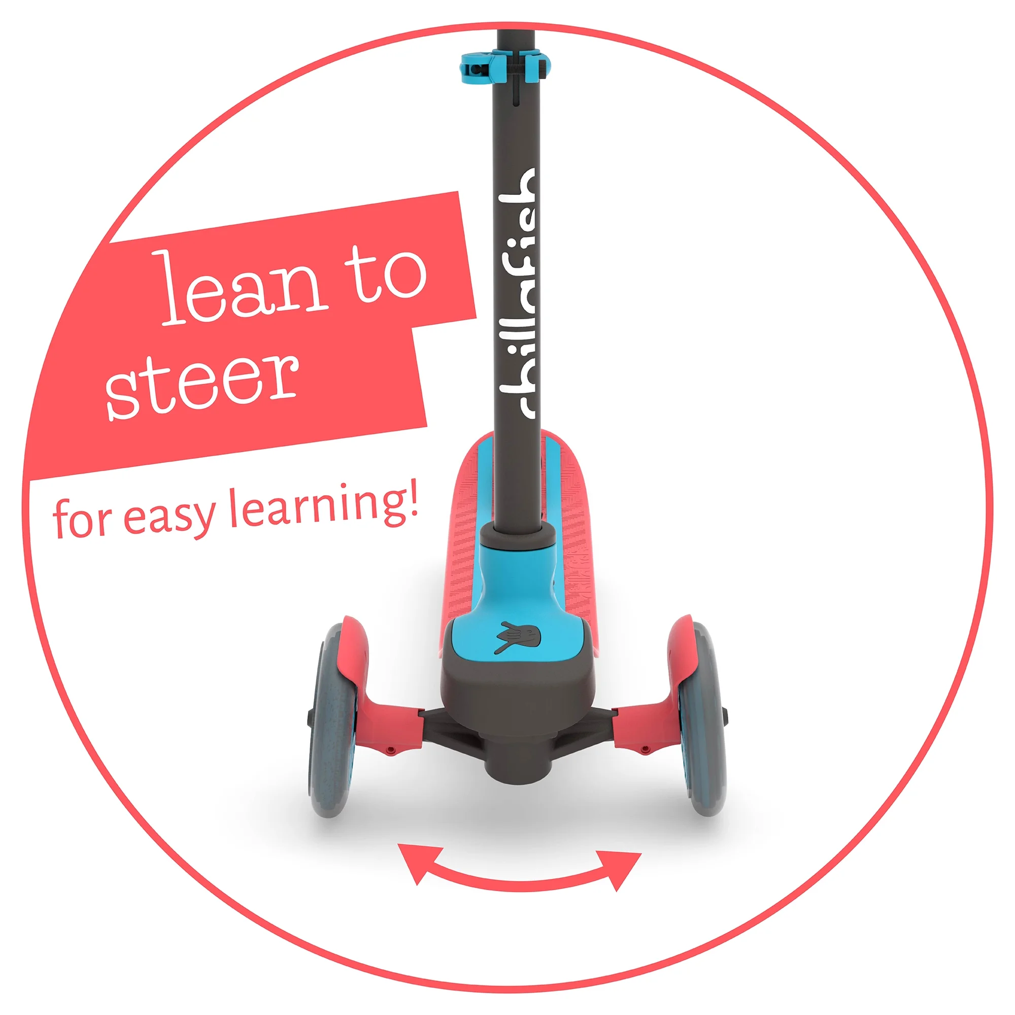 Scotti is our Chillafish interpretation of the classic 3-wheel scooter. Scotti lightweight scooter for kids age 3 and up is a re-invention of the lean-to-steer scooter, featuring our signature and stylish twintip deck with integrated footbrake. The handlebar comes off in a snap without tools so you can easily take Scotti along to friends or to the park. Adjust the height to suit small kids and tall friends – the handlebar can adjust from 52cm to 73cm (from the ground). The high quality ABEC-5 wheels make you roll like you’ll never stop and the comfy handgrips feel like you’ll never want to let go. The deck is lightweight yet strong, for kids and adults up to 50kg (but we tested higher :-)). Scotti, lightweight, simple, stylish fun quality by Chillafish. Play Longer. Comes fully assembled in the packaging, just snap-in the handlebar and ready to roll ! Recommended age: 3+ / Recommended weight: max 50kg