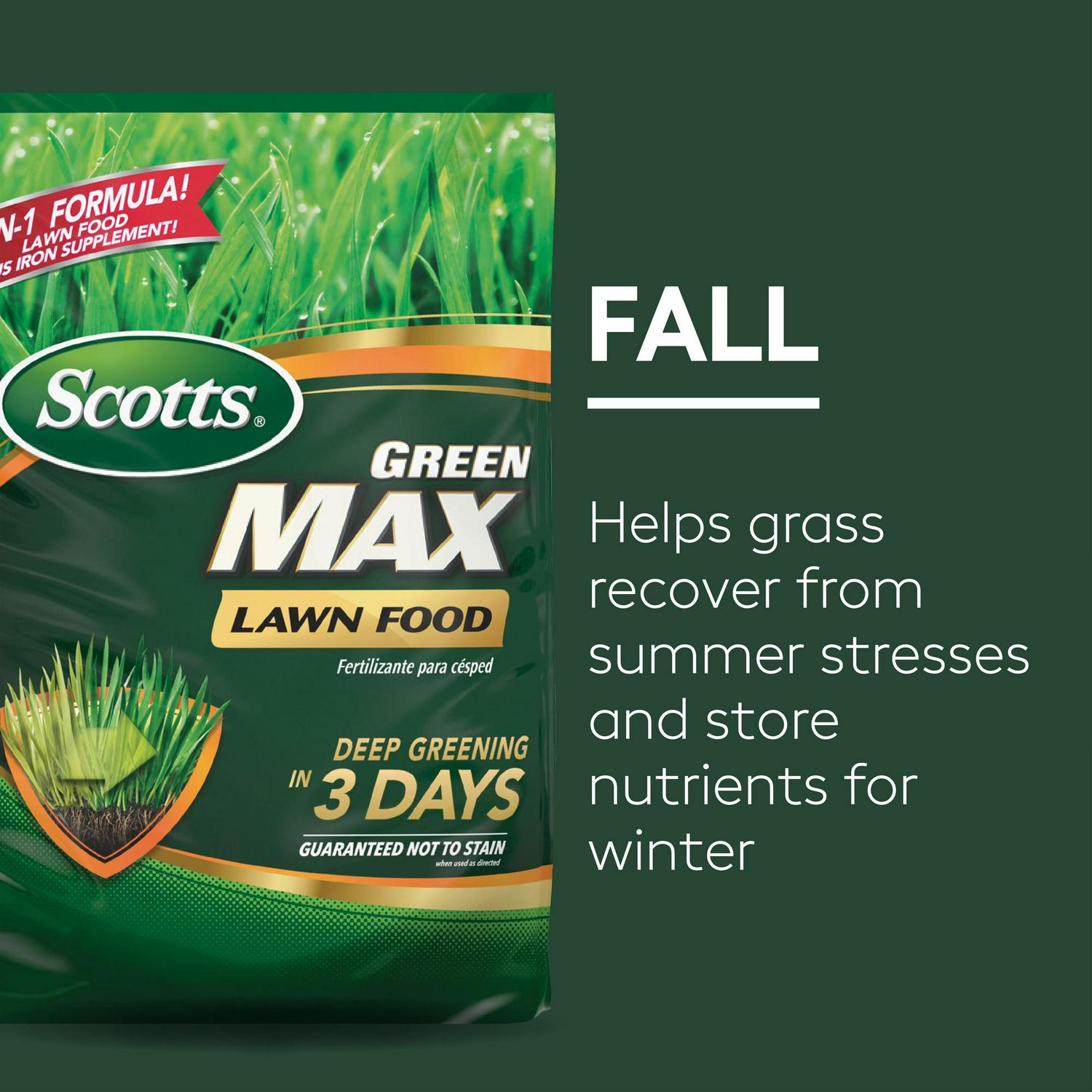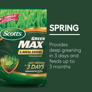 – Scotts Turf Builder Green Max Lawn Food is a fertilizer that contains 5% iron, an micro-nutrient that enhances the greening process so you see results in just three days