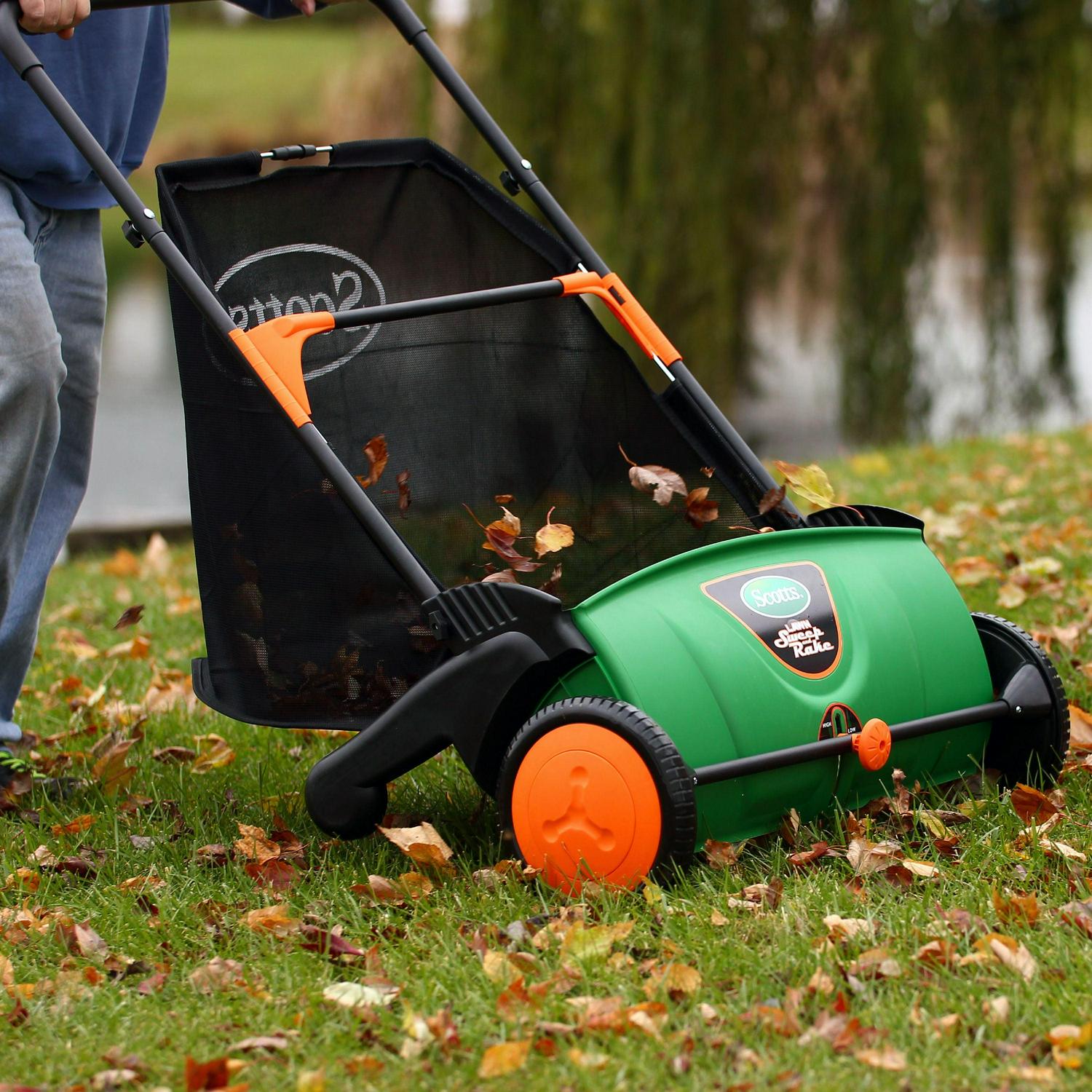 Don’t waste your time & energy by using a rake to clear away leaves, grass clippings, debris, even pine cones. With the Scotts lawn sweeper, the job of cleaning your lawn becomes much easier. The large 26″ Sweeping width two brushes section is great for tackling grass clippings, leaves, & debris with ease. Quickly tailor the sweeper to suit the terrain with adjustable height control ideal for transitioning from lawns to patios, sidewalks & driveways. Tire ring/back-breaking lawn cleanups are a thing of the past; set the rake aside this year & go with Scotts sweep it! Includes a large 3 6 bushel collection bag that is easily removed. Attention: make sure the height of the brushes are adjusted to your lawn for optimum sweeping performance.