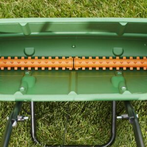 – Large capacity hopper holds up to 10,000 sq. ft. of Scotts lawn product, including grass seed and fertilizer