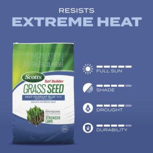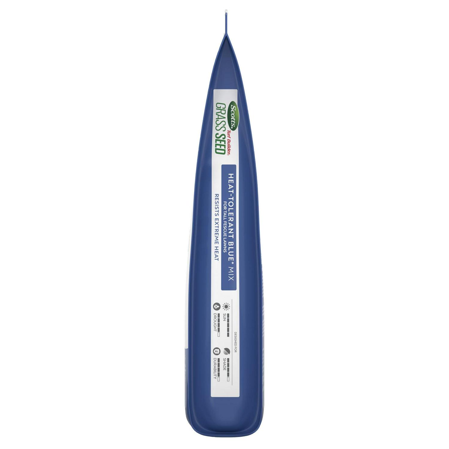 – The redesigned Scotts Turf Builder Grass Seed Heat-Tolerant Blue Mix for Tall Fescue Lawns resists extreme heat and features Root-Building Nutrition for a stronger lawn