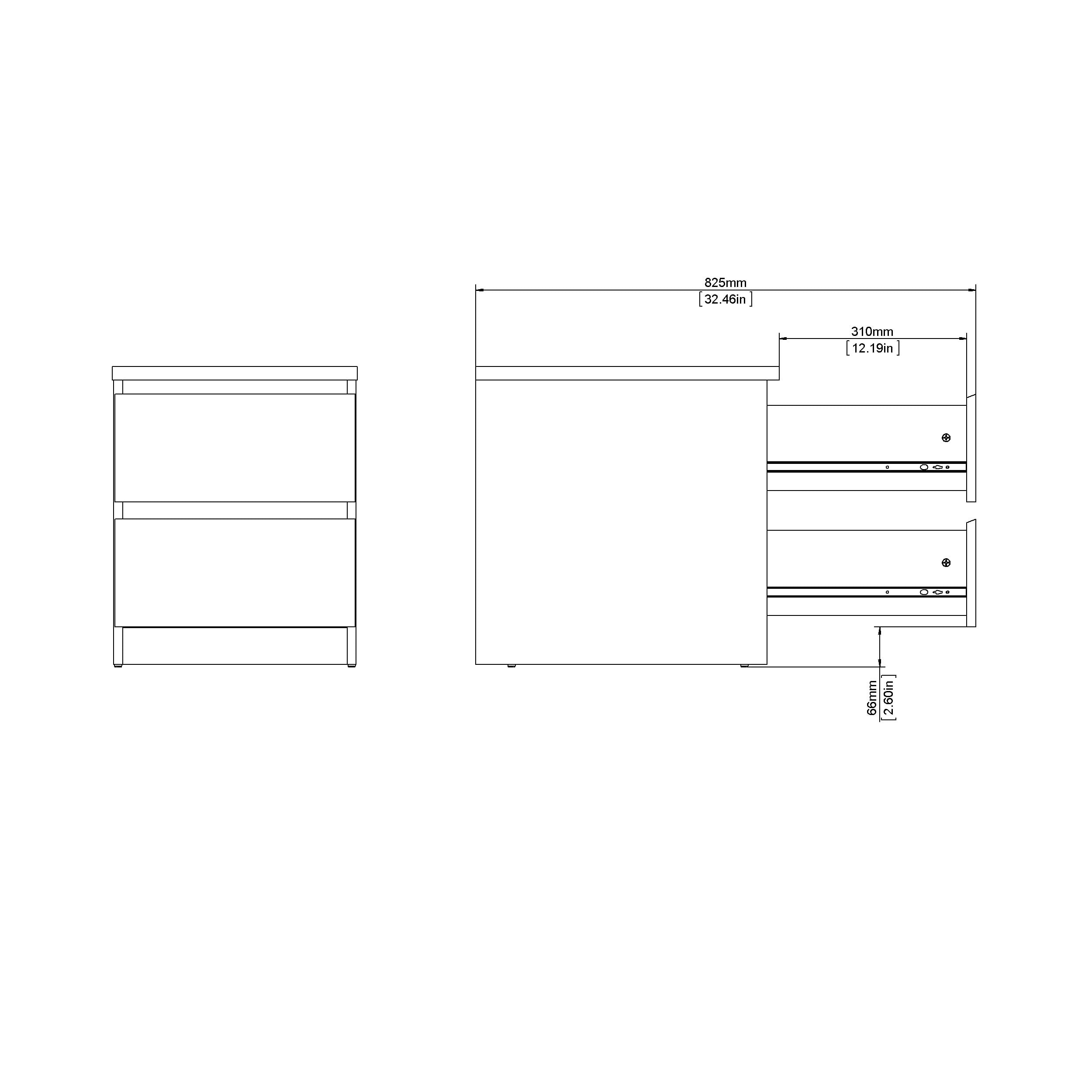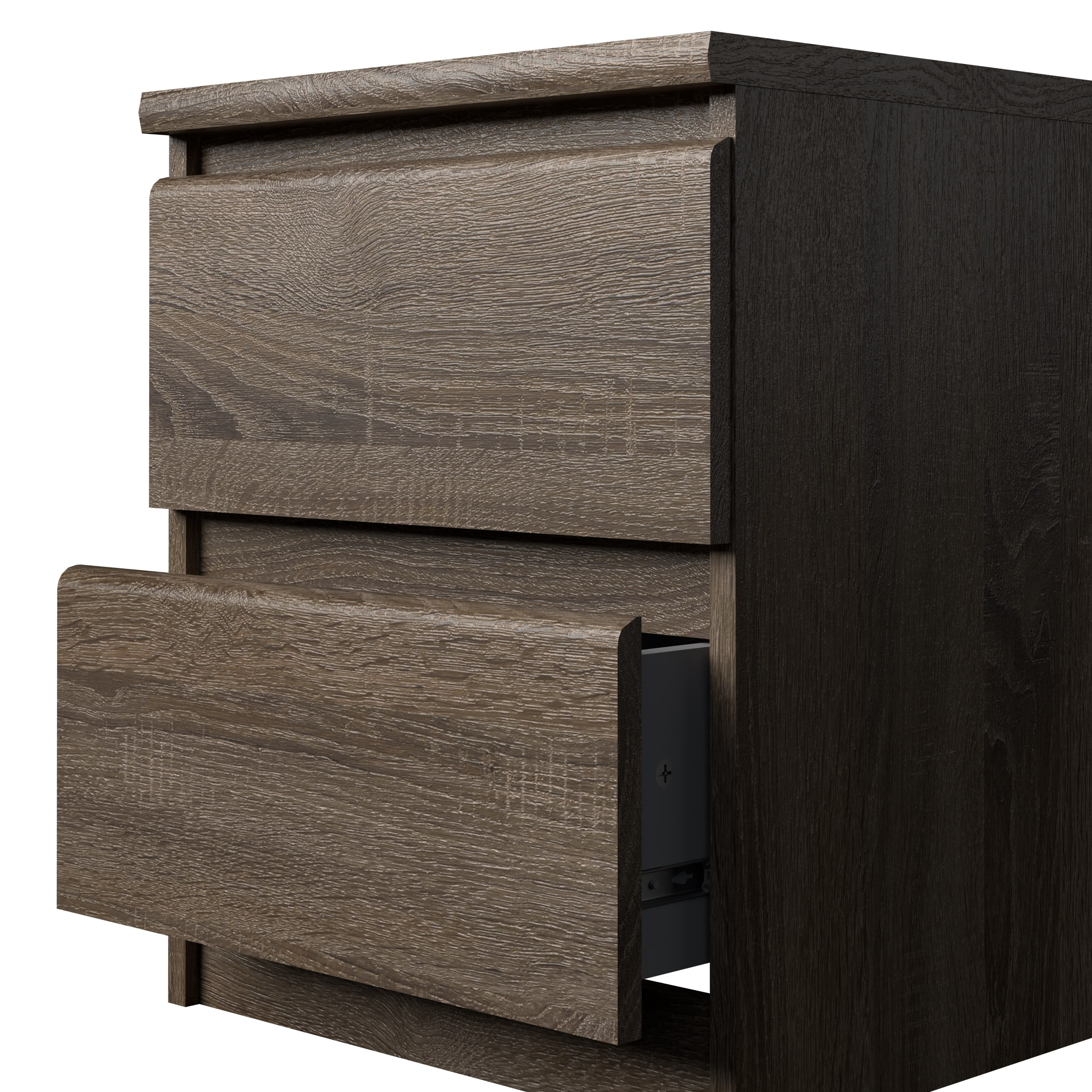 - Two drawers with metal drawer slides
