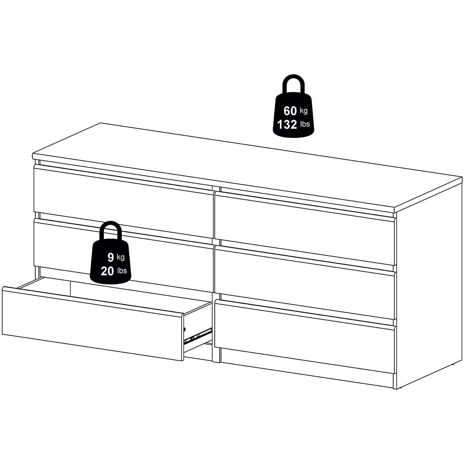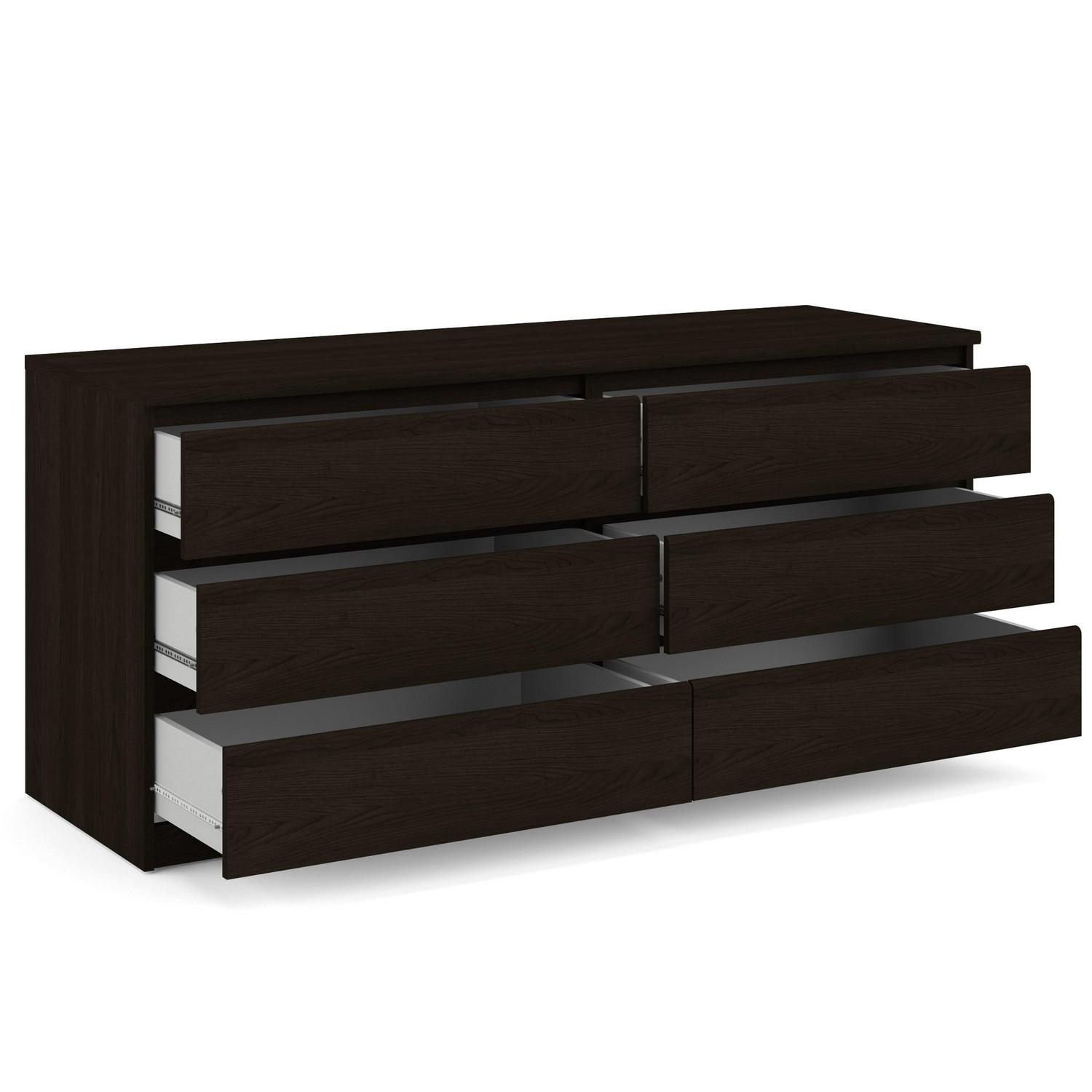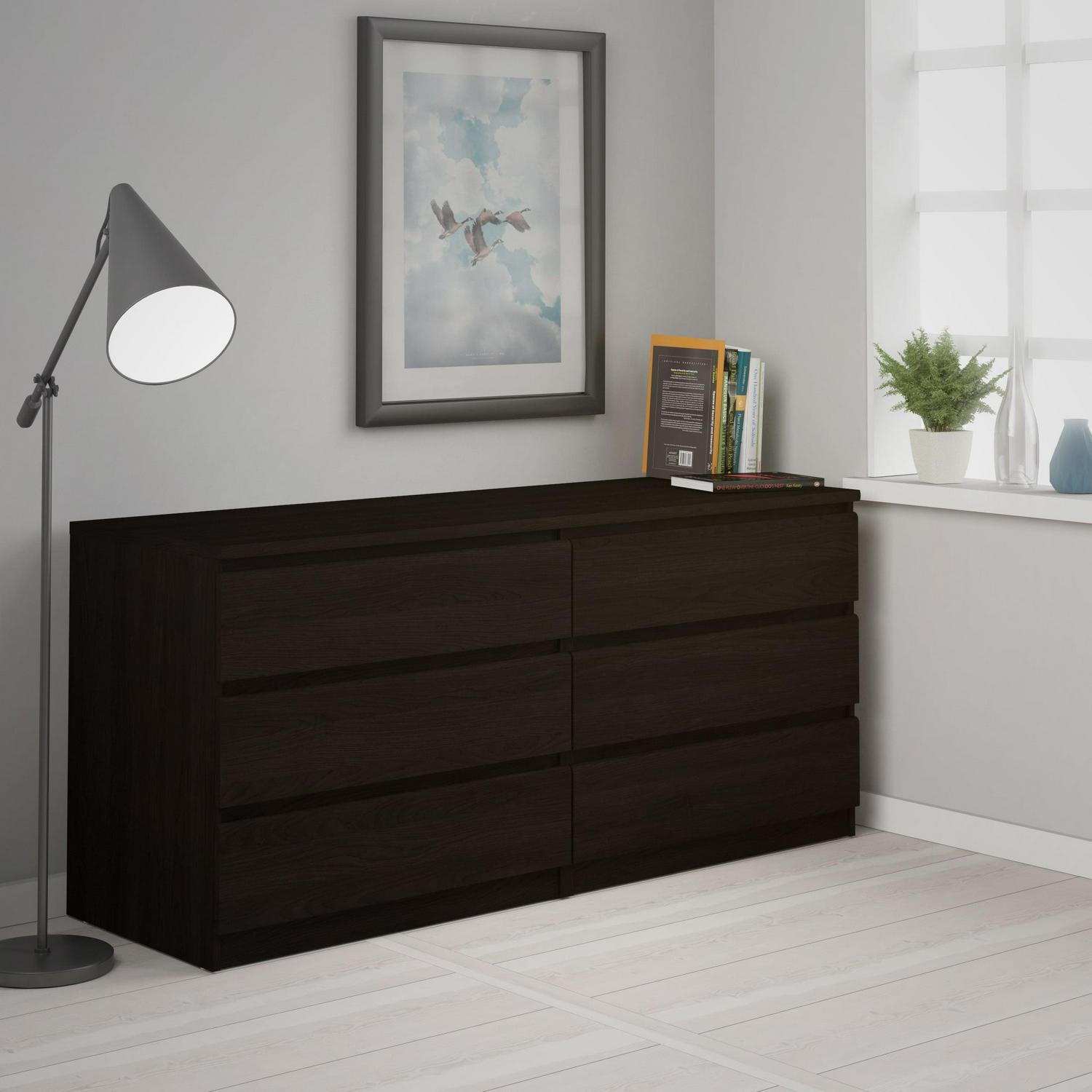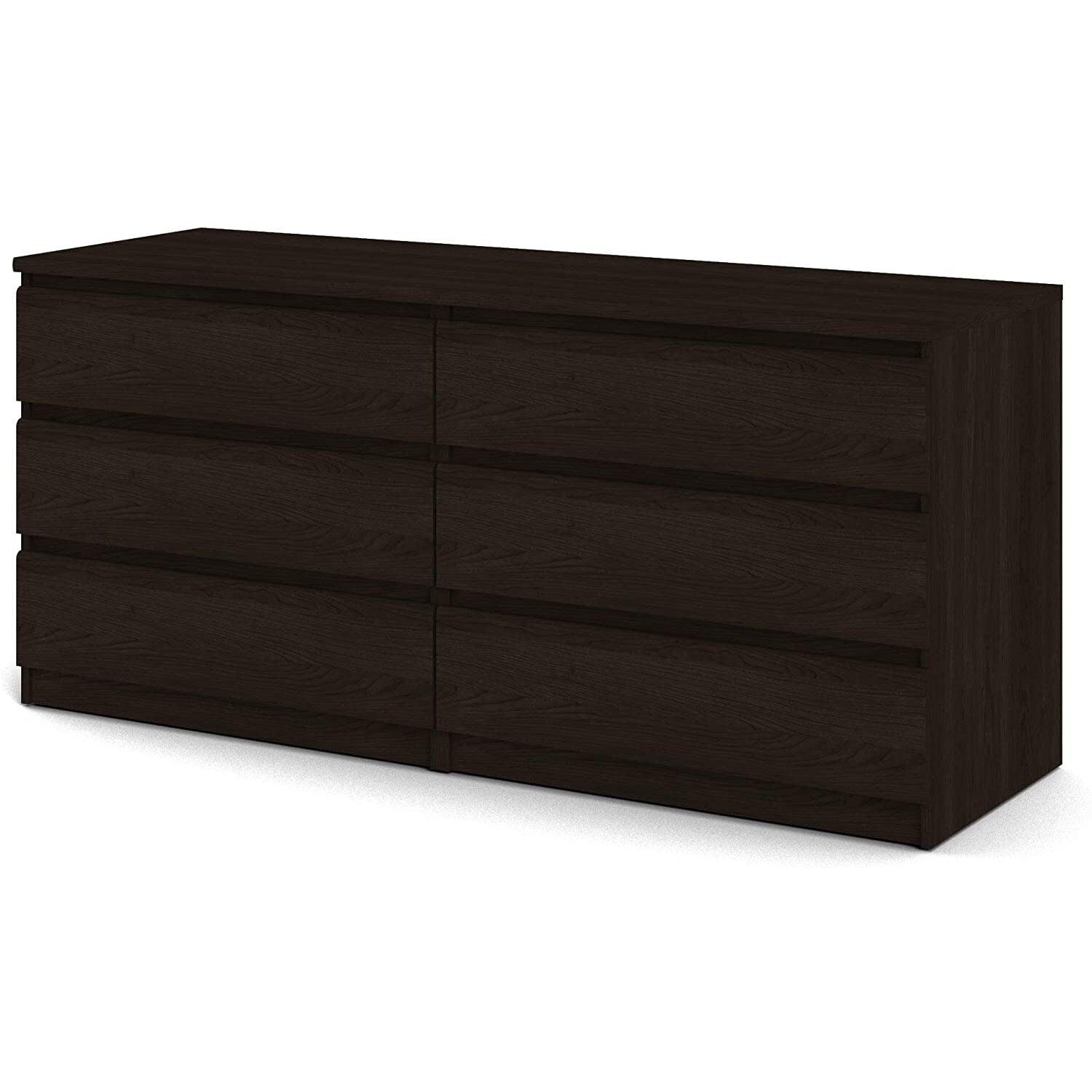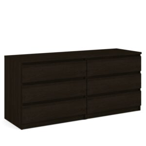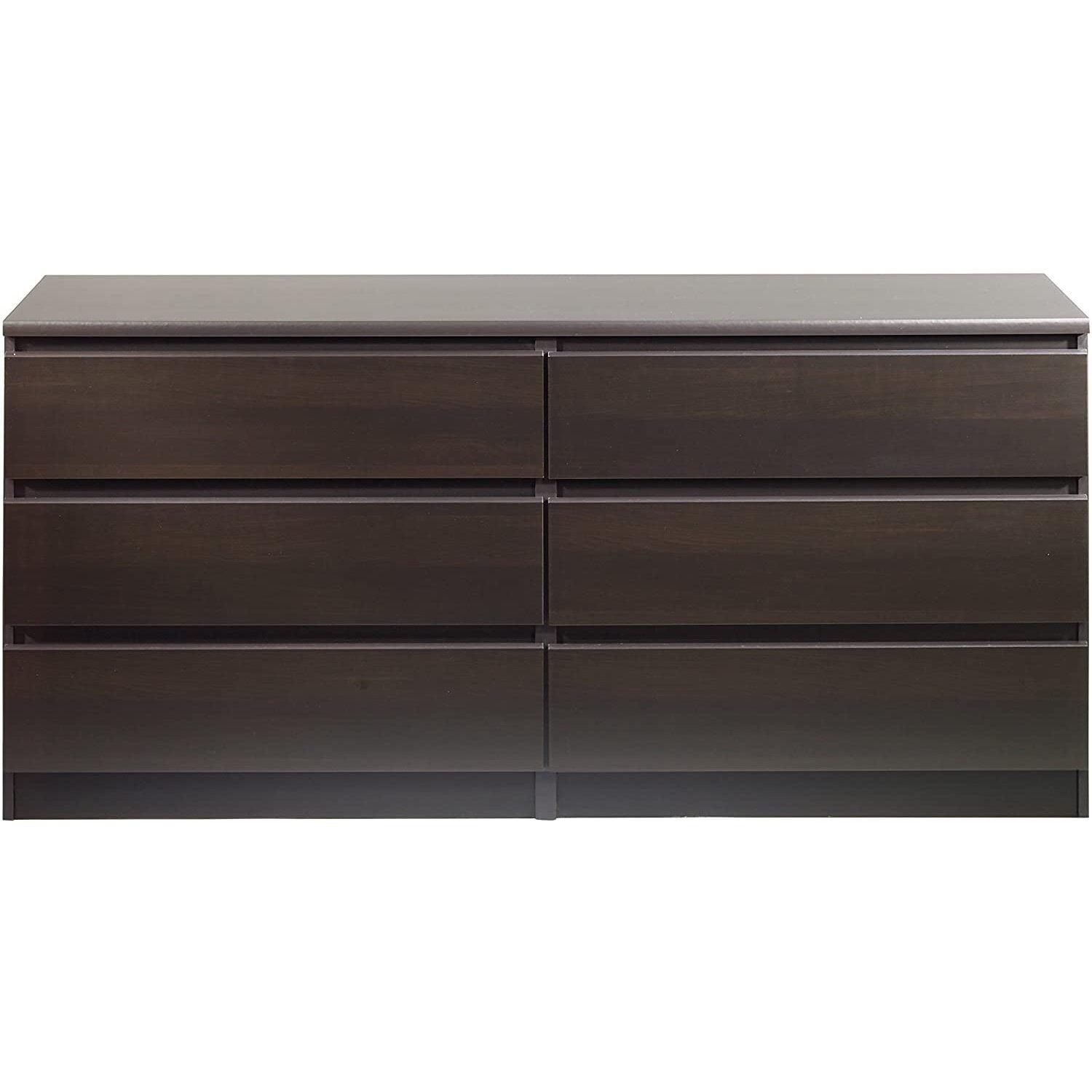 With ample storage space in its 6 roomy drawers the Laguna double dresser is an easy way to keep your belongings organized. From delicates to bulky items the Laguna 6 drawer double dresser can store various items while offering a modern, sleek look that merges seamlessly with any dcor. With metal drawer glides and maple drawer interiors for smooth movement the chest is a sturdy, yet simply designed piece. The finish is easy to clean, water, scratch, and stain resistant making it an ideal choice for families or college Living.