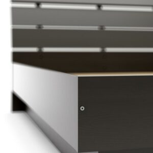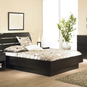 Sleep soundly and in style with the city chic platform bed from the Laguna Collection. The Laguna platform bed is a centerpiece for any bedroom. This composite wood construction has a comfortably arched headboard perfect for reading or surfing the internet in bed. The simple yet sturdy frame blends well with a variety of decors and sets the foundation for a room to have a clean, calm ambiance.