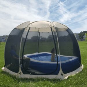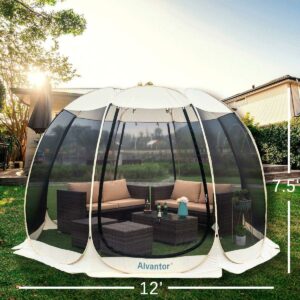 Enjoy the outdoors by using Alvantor 12′ x 12′ Instant Canopy Screen House Beige. The clam screen tent is pop up style and easy to set up, so do-it-yourselfers can put it to use quickly. This instant canopy has UV 50+ protection canopy to keep the sun off those who are inside. The mesh walls offer the perfect air ventilation. The canopy tent has two zippered doors for simple entry and exit as well. The bug-free canopy provides protection from insects on all sides. It is the best choice for picnic, barbecue and party in the backyard and park! This pop up screen gazebo has plenty of space, light-weight and fold compact for easy transport.
