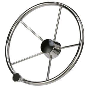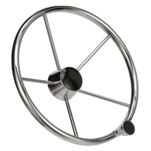 Seachoice 15″ Stainless Steel Destroyer Wheel with Turning Knob and Black Center Cap: