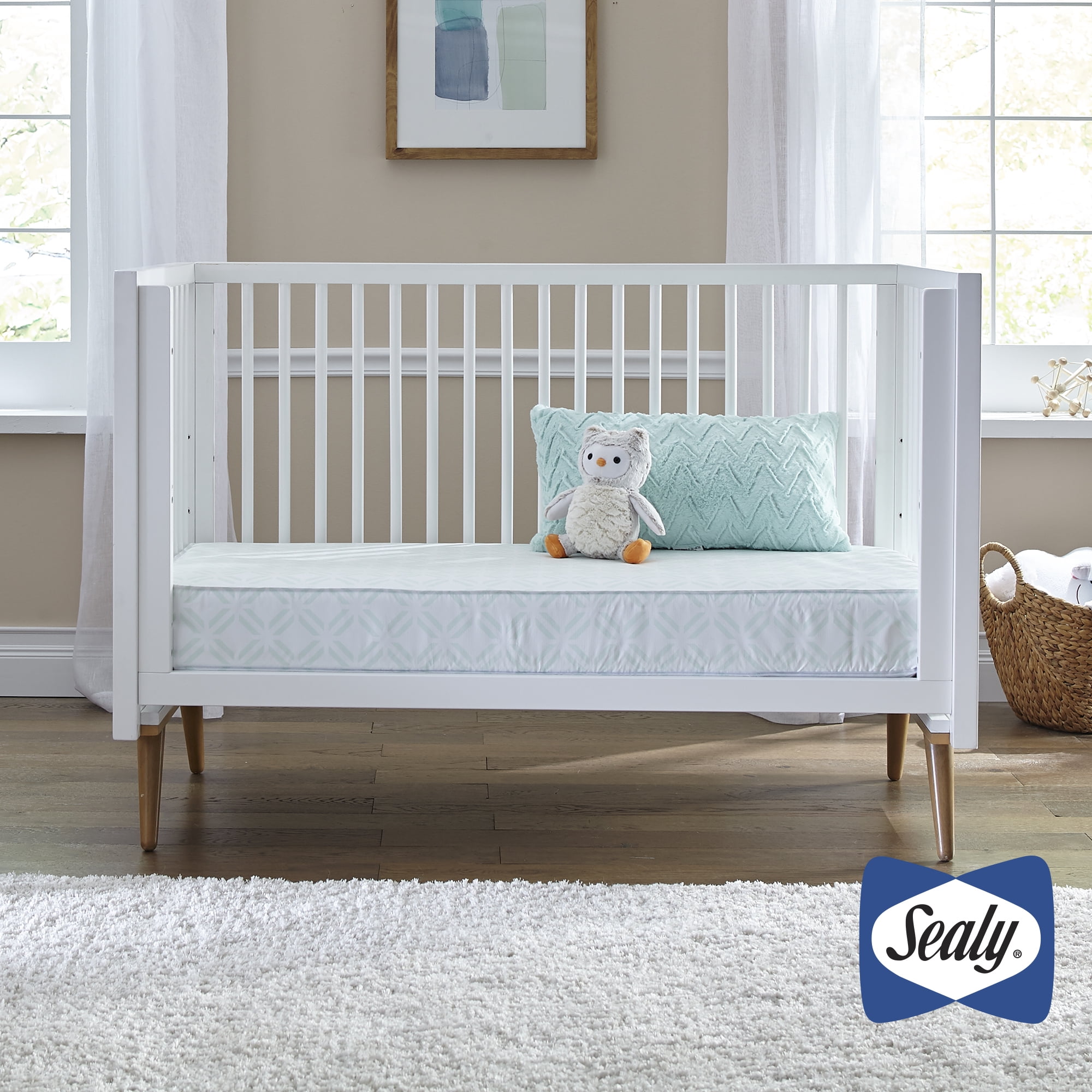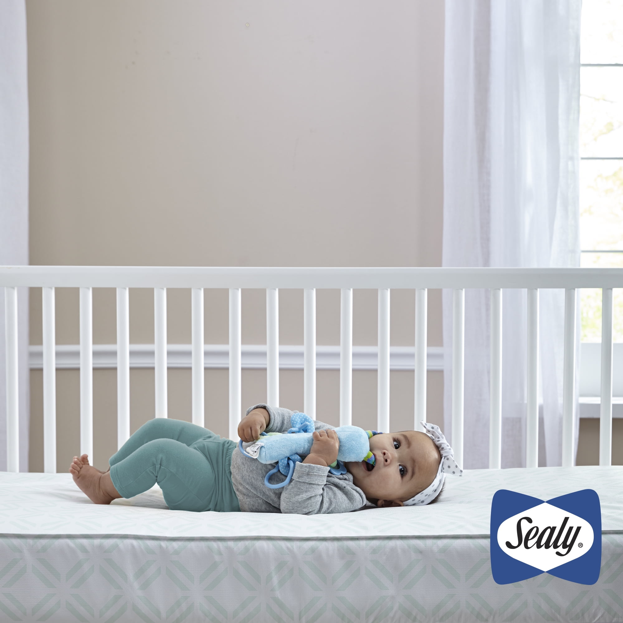Safety and quality tested for chemicals, crib fit, firmness, durability and over a hundred tests 2-in-1 grow-with-me design with 2-stage of firmness, a firmer infant side and a softer toddler side Airy layer of foam flexes under a growing childs body weight Premium firm crib mattress with a high coil count of 204 durable steel coils tested for firmness Steel edges keep the sides supported just like an adult mattress Exclusive EverEdge corner and side protection Firm yet comfortable hypoallergenic cushioning all around for newborns, infant and toddler safety, support and comfort Waterproof reinforced cover and binding resist liquids and stains and wipes clean with soap and water Airflow pocket helps the mattress breathe 20-year warranty on workmanship and materials Fits all U.S. standard size cribs and toddler bed frames GREENGUARD Gold Certified for a healthier sleeping environment Meets or exceeds all flammability and lead testing and does not contain flame retardants IMPORTANT – CHECK THE SELLER PRIOR TO MAKING YOUR PURCHASE. Sealy cannot guarantee the quality or authenticity of Sealy products from unauthorized sellers on . To ensure the very highest safety and quality for you and your family, only buy from listings that are “Sold and Shipped by .” The Sealy warranty does not cover products purchased from unauthorized sellers.