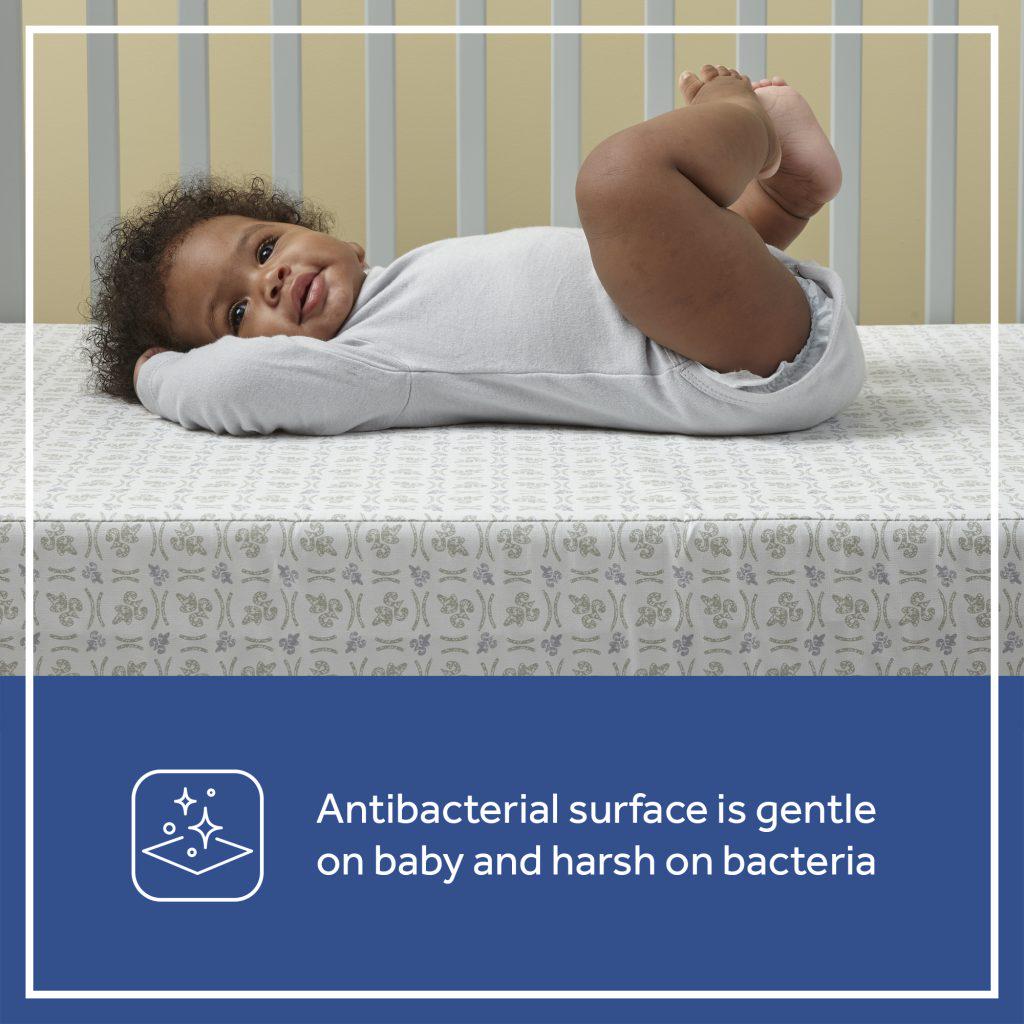 – STAPH-GARD ANTIBACTERIAL SURFACE & WATERPROOF PROTECTION: Enhanced with our exclusive Staph-Gard antibacterial cover. Laboratory tested Staph-Gard helps is gentle on babies and harsh on bacteria. The cover is also waterproof to keep leaky messes from seeping into the mattress. It’s essential your baby’s mattress is designed with a waterproof barrier to help protect against mold, mildew, odors, and bacteria that can grow inside the baby’s mattress.