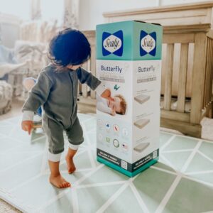 More babies sleep on a Sealy than any other crib mattress brand. Sealy Baby crib mattresses are known for superior quality, safety and support. The Sealy Butterfly crib mattress collection has a variety of waterproof covers to choose from. Made with durable, lightweight high-density foam. Locally made, non-imported foams are CertiPUR-US Certified for durability and quality. A reinforced tear-resistant laminate cover zips over the foam core. 100% waterproof surface and a sleek, seamless design. The entire crib mattress is GREENGUARD GOLD Air Quality Certified for a healthier environment. Square corners create a snug fit in cribs and toddler beds. Popular crib mattress-in-a-box safely expands and rolls out flat to fit all standard size cribs and toddler beds. Crib mattress measures 52×28 inches. Passes ASTM crib mattress standards for firmness, fit and lasting durability. Warranty on workmanship and materials.