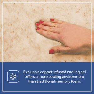 – Copper infused cool gel foam is designed to sleep cooler than traditional memory foam, tested in a third-party laboratory.