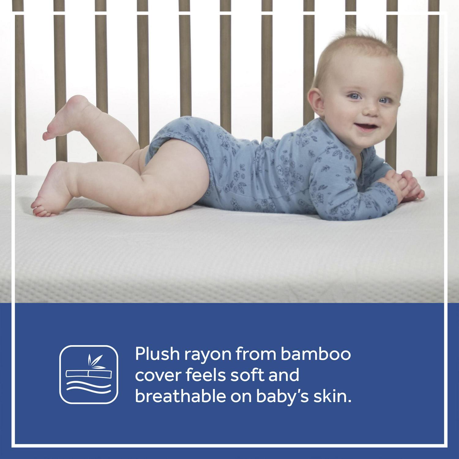 – BREATHABLE RAYON FROM BAMBOO KNIT COVER: Luxuriously soft and breathable on baby’s skin, a silky rayon from bamboo knit cover also comes with zipper to remove it for easy-cleaning in the wash
