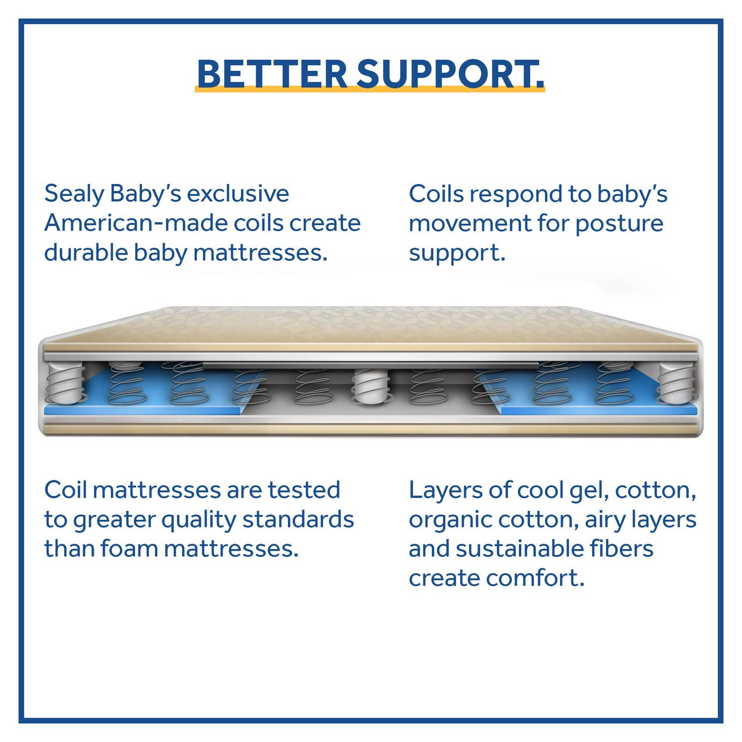 – PREMIUM FIRM STEEL COILS: 204 premium firm posture support coils are crafted and durability tested by our expert team in North Carolina to help ensure infants and toddlers have a safe, firm foundation, proper support, and lasting durability for years of use.