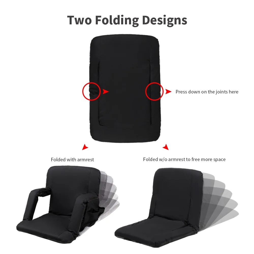 Seamander Large Size Foldable Stadium Seat Chair for Bleacher Padded Back Support with 6 Reclining Positions, Black