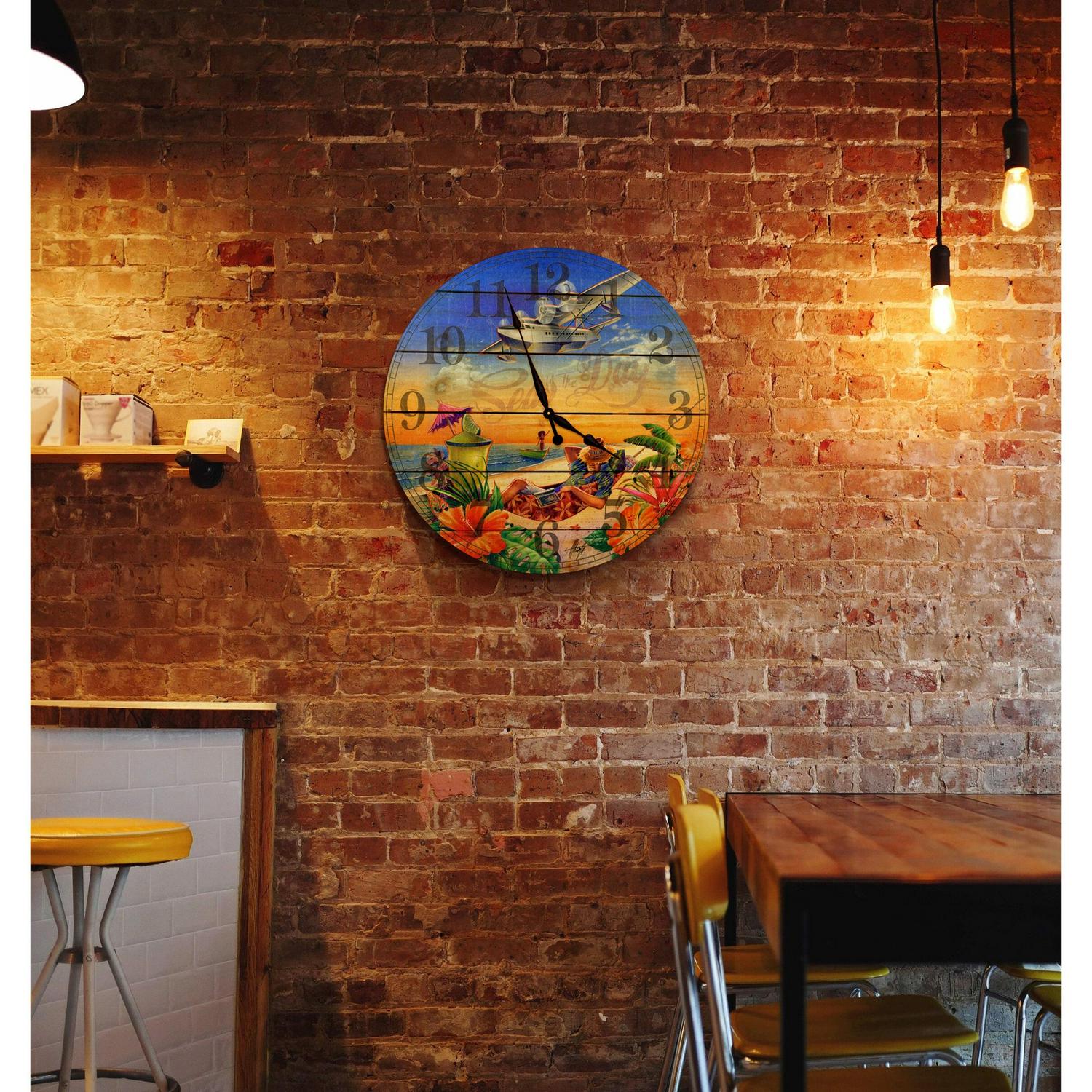 Seas The Day 30 Wood Wall Hanging Clock – Multi-color