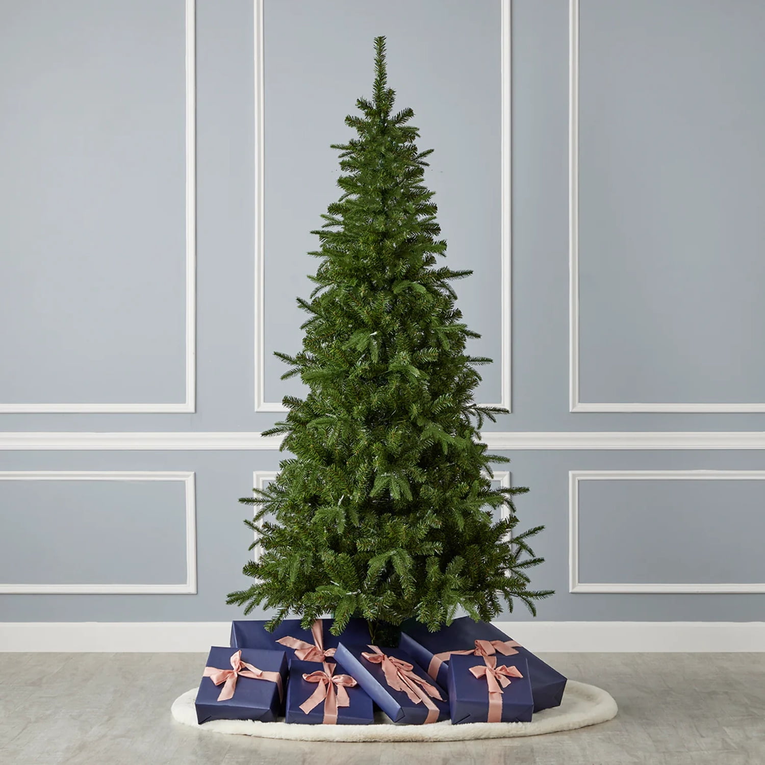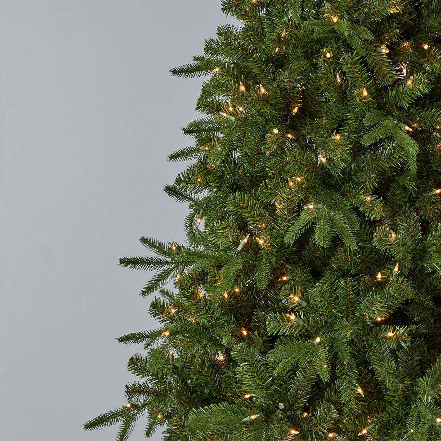 This lifelike tree features branches and tips carefully constructed to best mimic nature’s own design. Utilizing a combination of PE and PVC materials, this thick and full-bodied tree will be a reliable holiday centerpiece for years to come. The branches are pre-strung with a total of 200 warm white LED lights that are both energy efficient and long-lasting. Hinged branch design and three section construction make set up quick and easy and disassembly for storage just as effortless. The slender design of this tree makes it an ideal option for showcasing in spaces with restricted floor area. Measures 7 ft. tall with 38” diameter, 200 lights, and 1020 branch tips Hinged branch design Three section construction for quick set-up Includes folding metal tree stand Energy efficient and long-lasting LED bulbs Fire-resistant and non-allergenic 5-year tree warranty / 2-year lights warranty