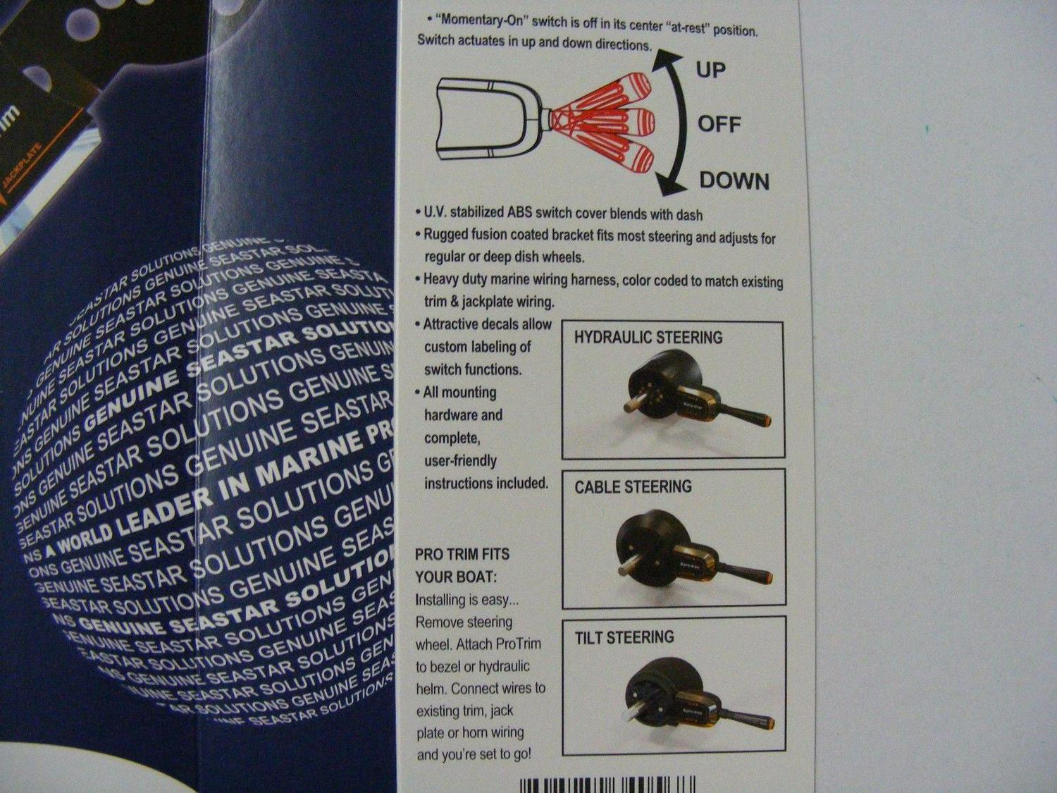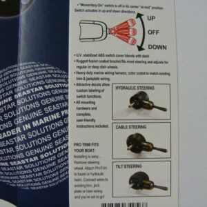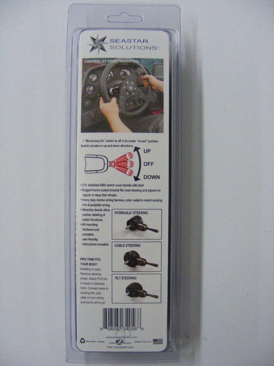 Pro Trim allows you to keep your hands on the wheel and eliminates wires tangled around the steering wheel. Momentary-on switch is off in it’s center position and actuates in the up and down positions, just like a turn signal switch on a car. Strong stainless steel bracket fits most steering systems and adjusts for regular or deep-dish wheels. Installs easily between the steering wheel and bezel. Great for Trim & Tilt units as well as electric or hydraulic Jack Plates. Pro-Trim is a bolt-on for most SeaStar Solutions steering systems and is attractively packaged, with everything you need. While the Pro-Trim is the only trim switch recommended for SeaStar and SeaStar Pro hydraulic steering, it can also be installed with many other mechanical and hydraulic steering systems. Its stainless steel bracket adapts to both regular and deep-dish steering wheels and the wiring harness connects with standard trim and jackplate wiring.