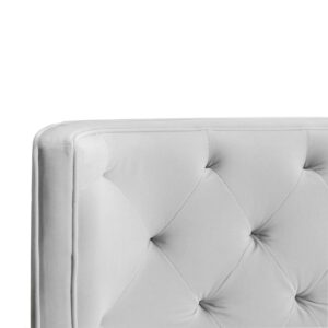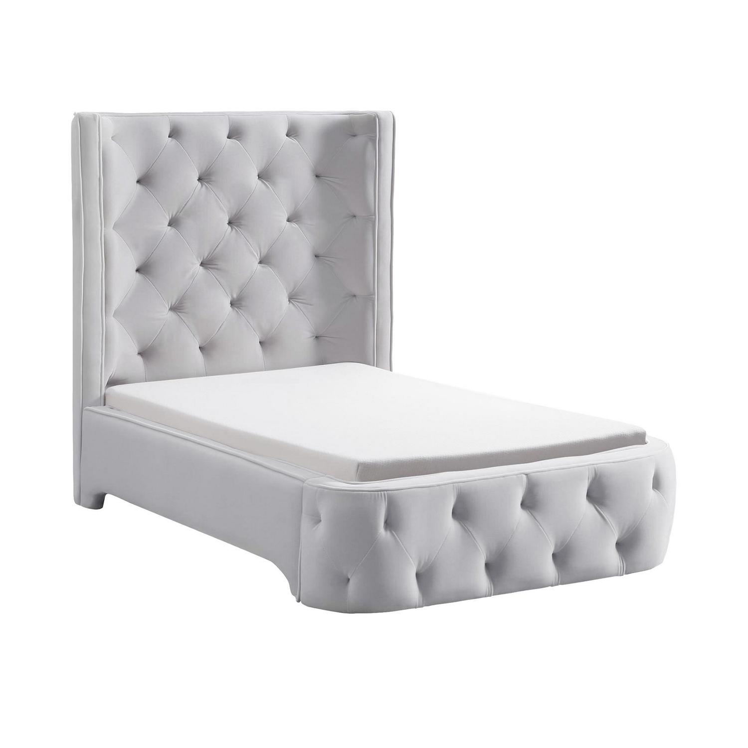 Elevate your kid’s room with the hand-crafted and fully upholstered Fable toddler bed by Second Story Home. The Fable features the extravagantly tall, tufted headboard and curved sides, giving a luxuriously look. The Fable was crafted to have the elegance of an adult bed while keeping a safe and compact design, perfect for any child. Designed to fit a standard-sized crib mattress, no box spring is required.