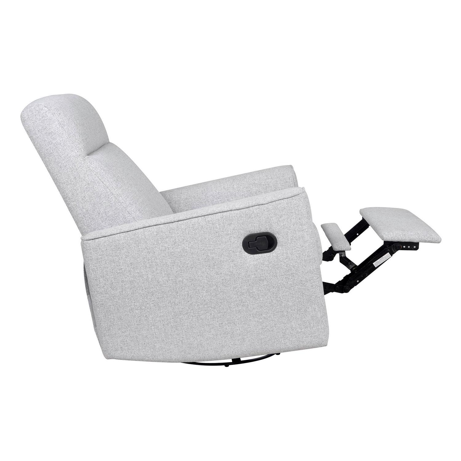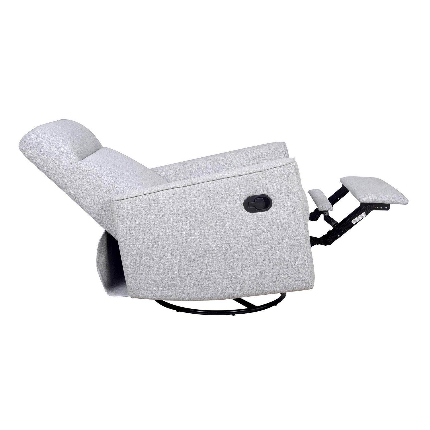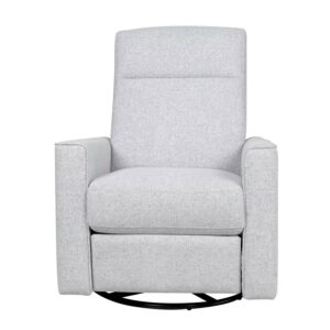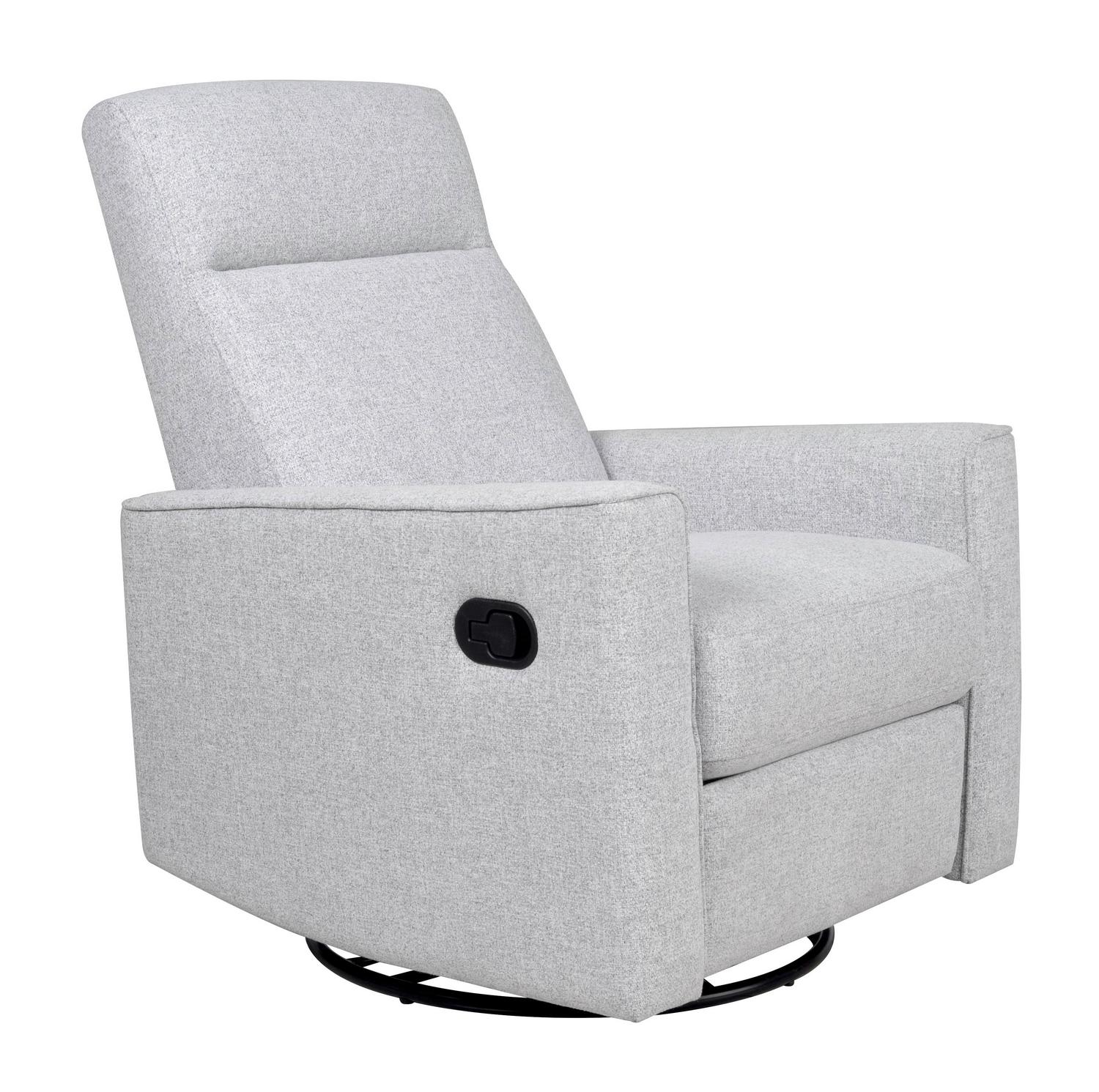 The Grove Swivel Glider Recliner from the Project Nursery collection is the perfect combination of clean design, contemporary styling, and classic utility. Supportive cushioning and durable heather gray upholstery surround a compact, modern recliner that makes a great addition to any nursery, bedroom, or living room. An industry-leading reclining mechanism allows the Grove to be adjusted into three secure seating positions. Combined with its full 360-degree swivel and smooth gliding motion, the Gove is the perfect option for however you and your loved ones like to relax. Measures 31″W x 30″D x 38″H, weighs 81.5 lbs.