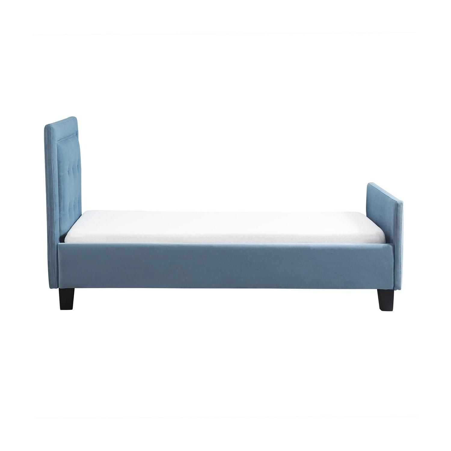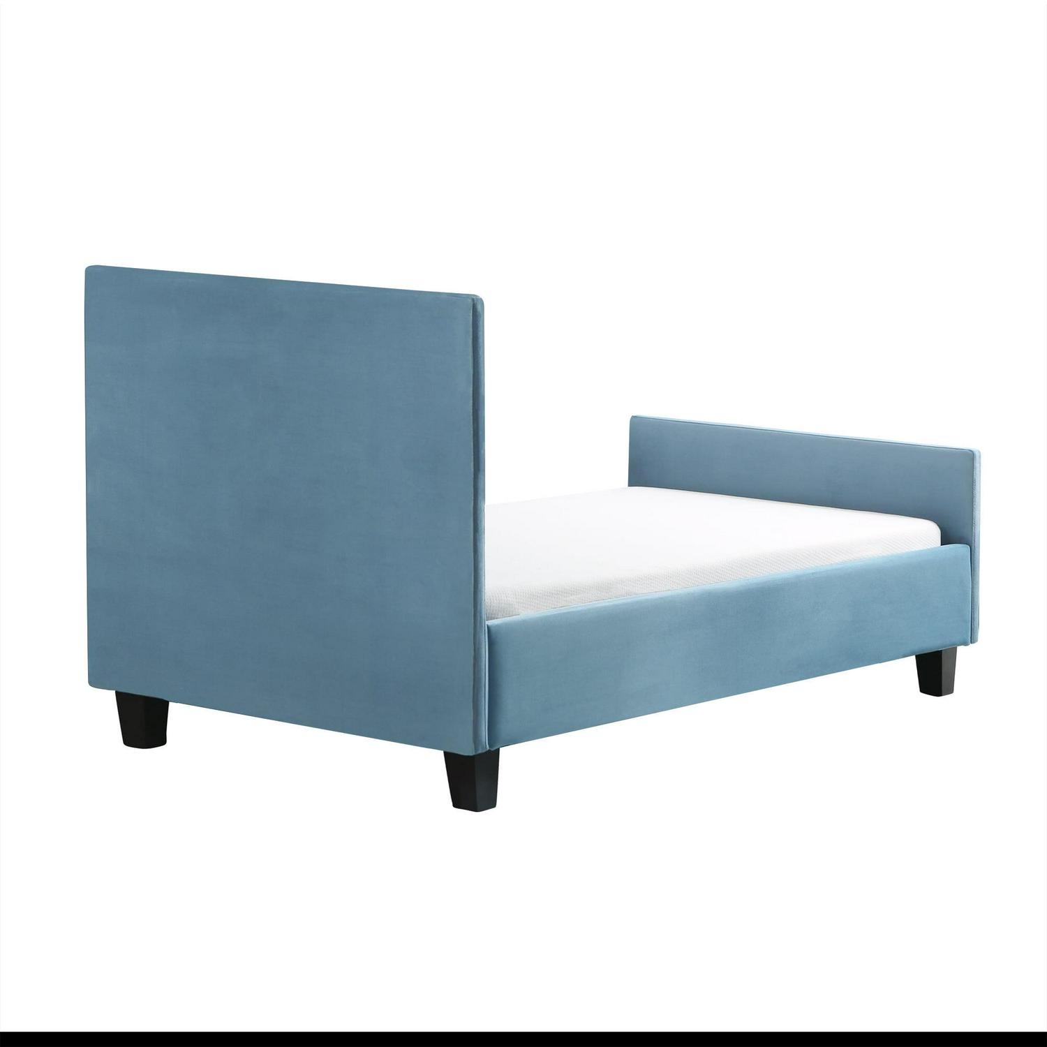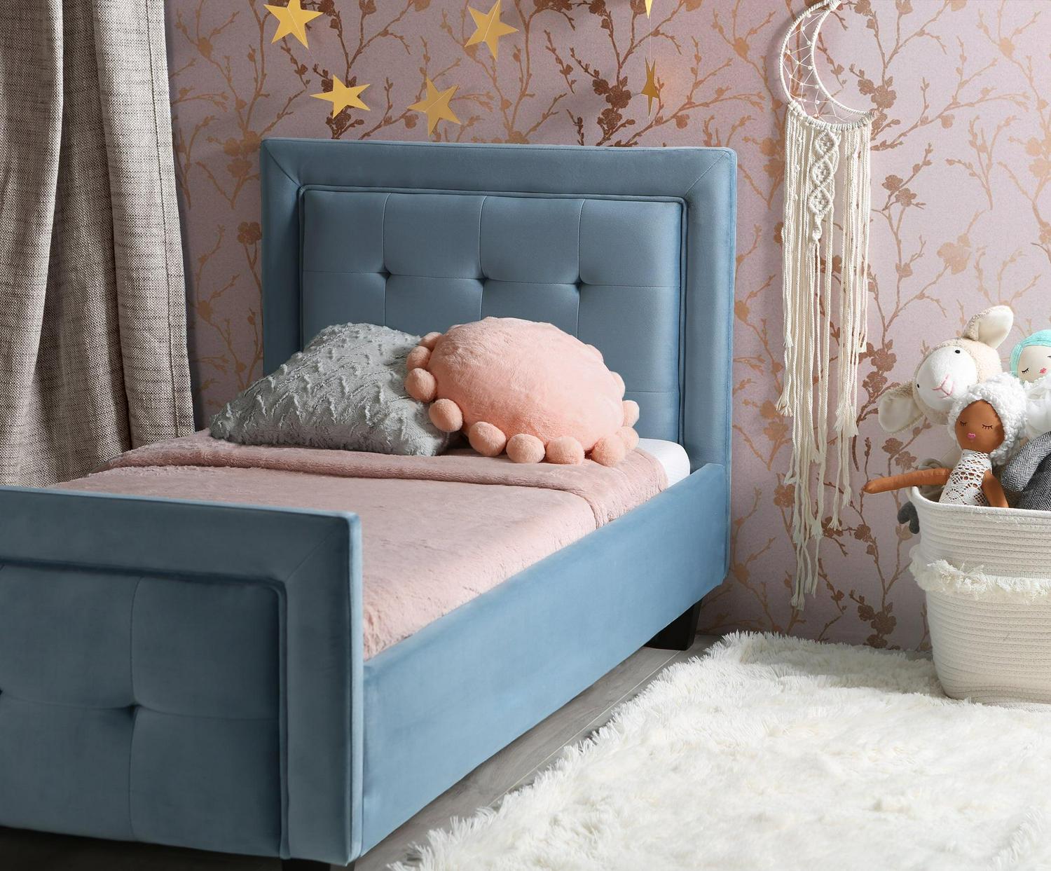 Give your little sleeper a little style of their own with the Nico Toddler Bed from Second Story Home. An open-side design with tufting detail on the head and footboard makes it every bit as elegant as an adult bed. Strong, clean lines balance perfectly with plush velvet upholstery to create a look that is perfect for any child. Designed to fit a standard-sized crib mattress, no box spring is required.