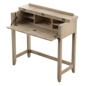 The simple design of this secretary desk pairs well with any type of home decor and will seamlessly blend in with your home’s unique style. It’s compact, yet functional, with a clean open workspace and a bonus drop-down writing surface. Two built-in USB power ports make it an ideal spot for charging phones and other mobile devices while an interior shelf is perfect for separating the mail. Use this beautiful piece anywhere as a desk or place it by the front door as a handy console table.