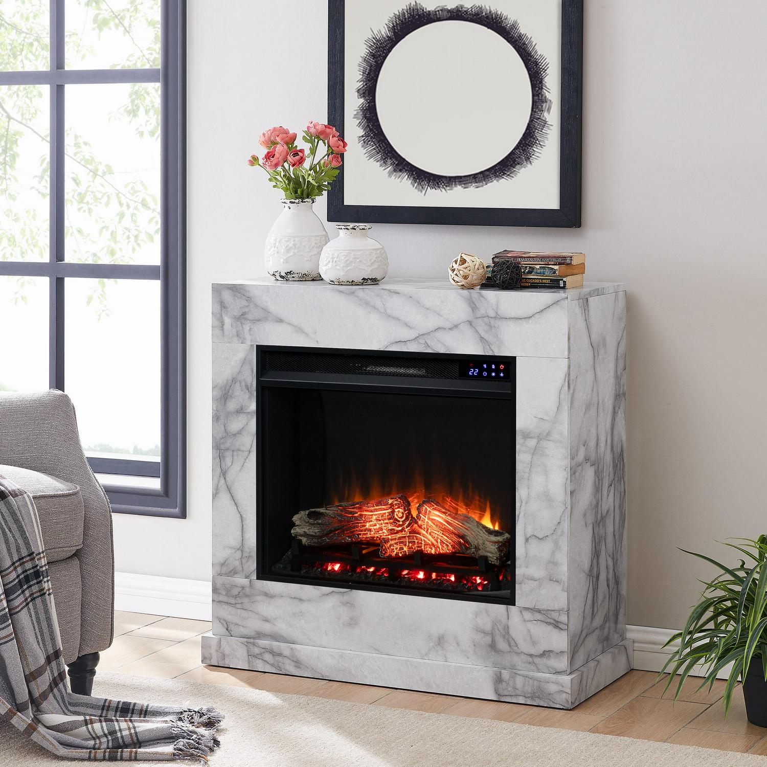 SEI Furniture Dendale Faux Marble Electric Fireplace with Touch Screen 33.25 x 32.25 Freestanding Indoor Electric Fireplaces