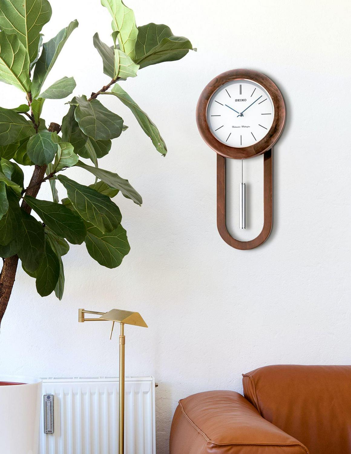 - Seiko Circular & Sleek Wall Clock Pendulum and Dual Chimes in brown