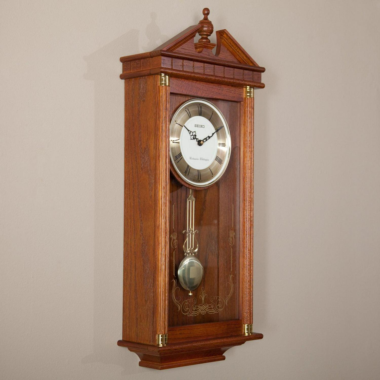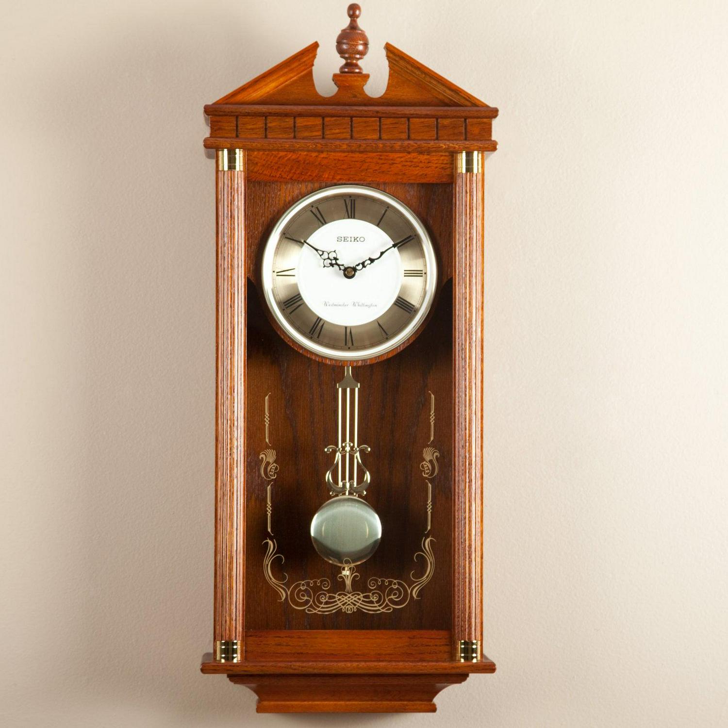 Seiko Regal Oak Wooden Chime Wall Clock Pendulum, Quartz, Analog QXH107BLH