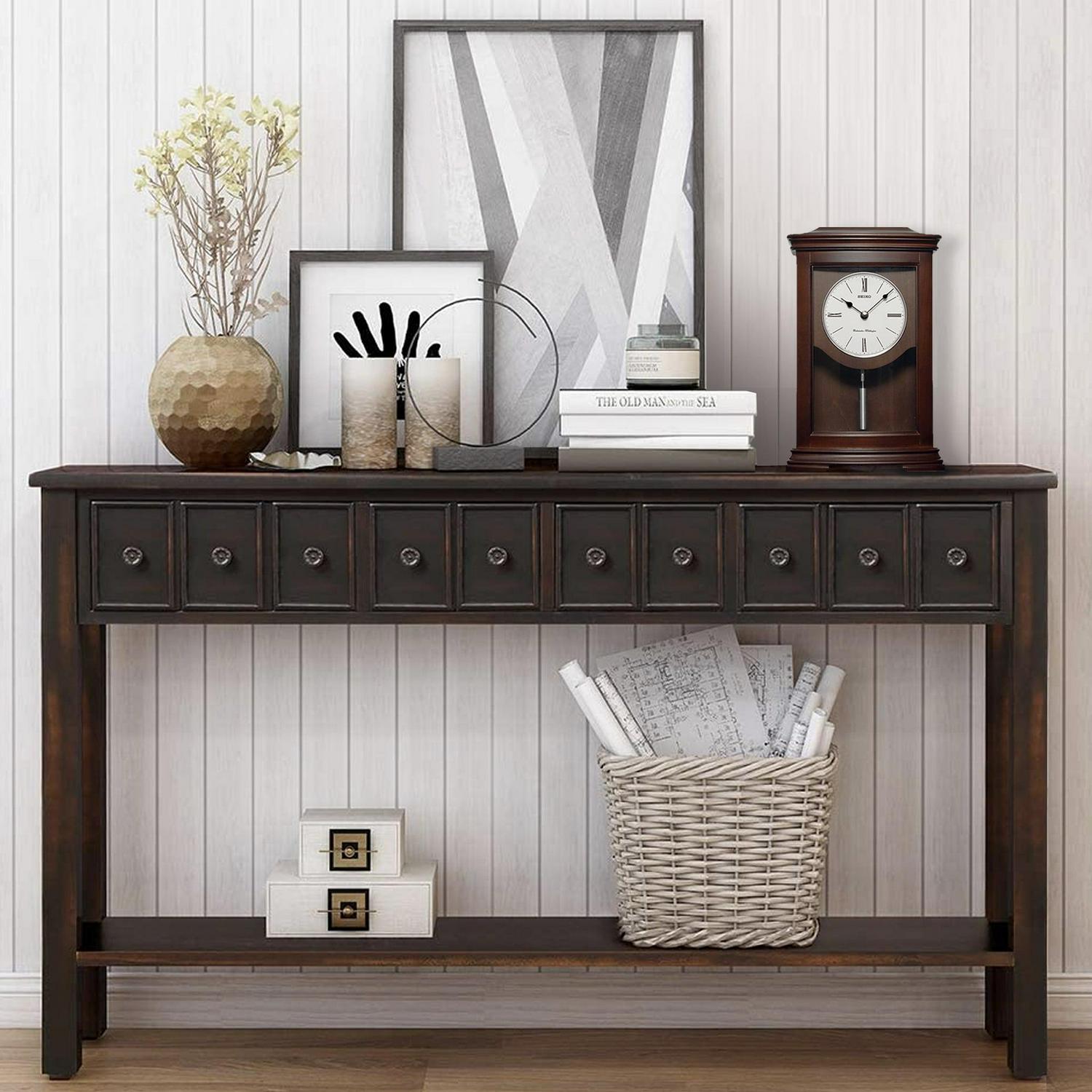 Seiko Suki Chime Clock w/Pendulum Brown Mantel Clock, QXQ013BLH