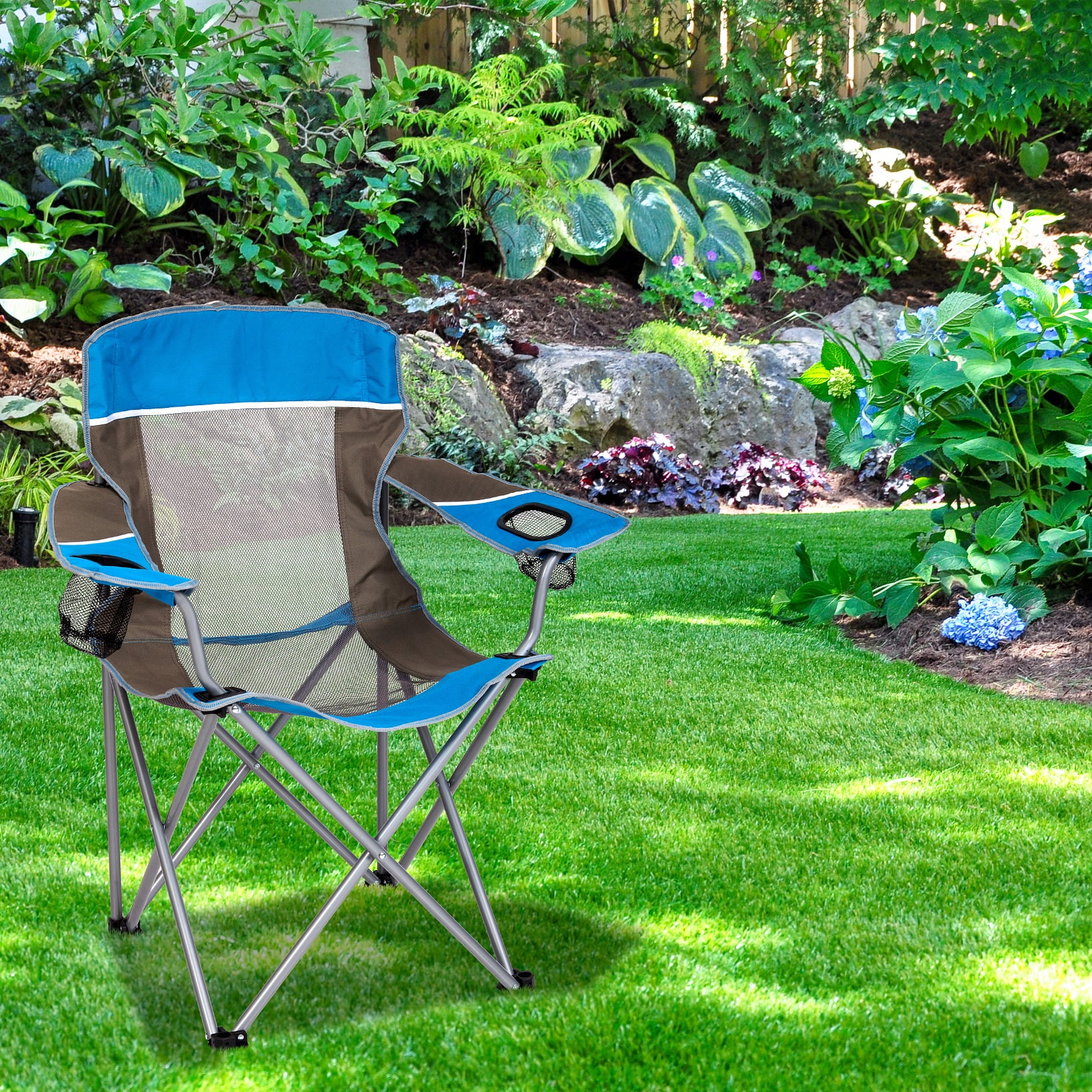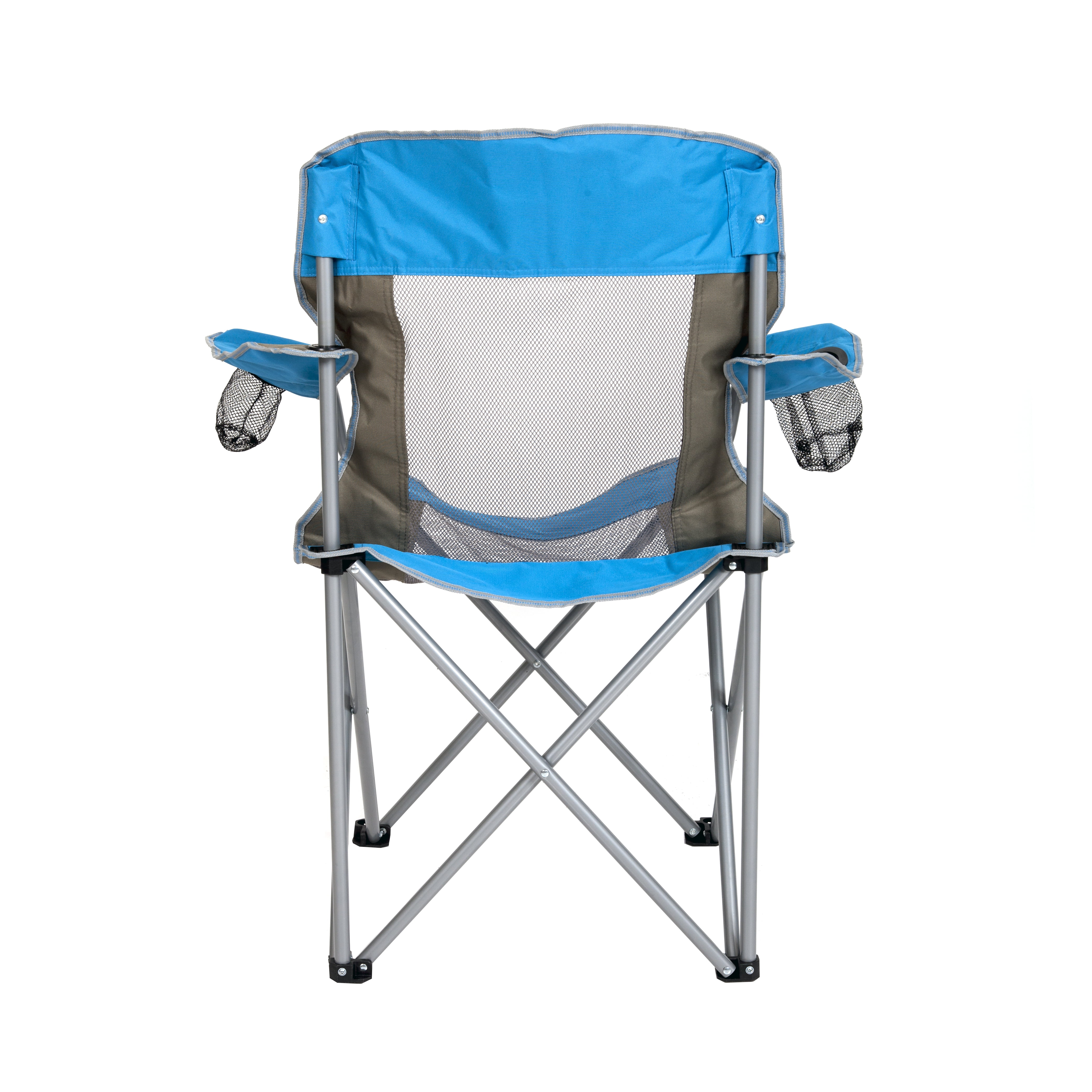 Seina Oversized Folding Mesh Camping Chair with 2 Cup Holders, Blue & Grey