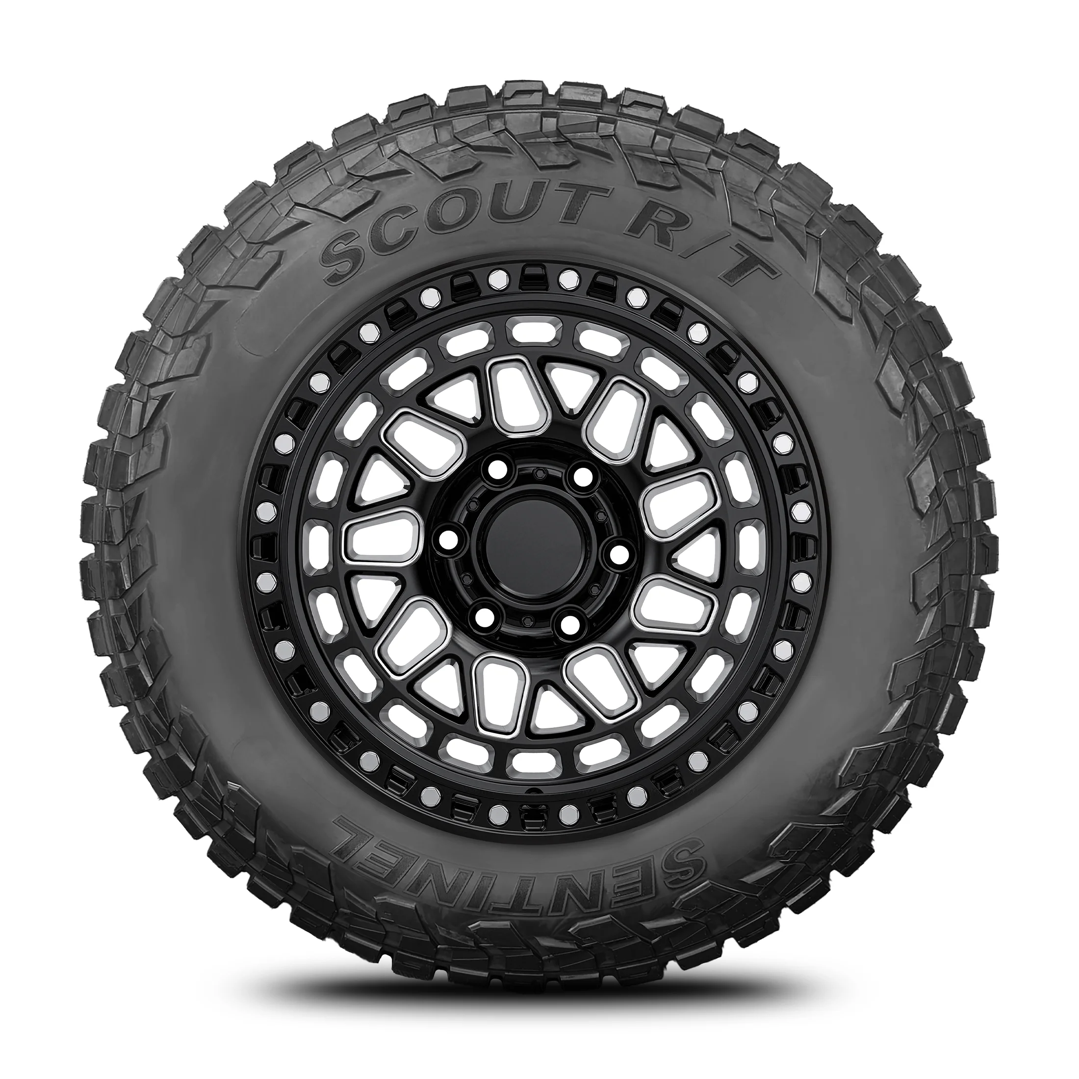 Sentinel Scout RT Rugged Terrain LT285/70R17 126Q 10PR E SUV Light Truck Tire 285/70/17 Features And Benefits Manufacturer Tread Wear Out Warranty All-season rugged tire for SUVs and light trucks Improved traction on soft, uneven, and loose terrains The 3D tread design and wide pattern enhance stability and responsiveness 3PMS rating pending testing OVERVIEW The Sentinel Scout RT Tire is a rugged terrain, all season tire model manufactured for SUVs and light truck vehicles.The tire’s 3D tread design and the unique wide tread pattern increase the tire’s soft, uneven and loose terrain traction. The shoulder tread design with the large tread blocks maintain constant road contact which upgrades the steering responsiveness and driving stability.