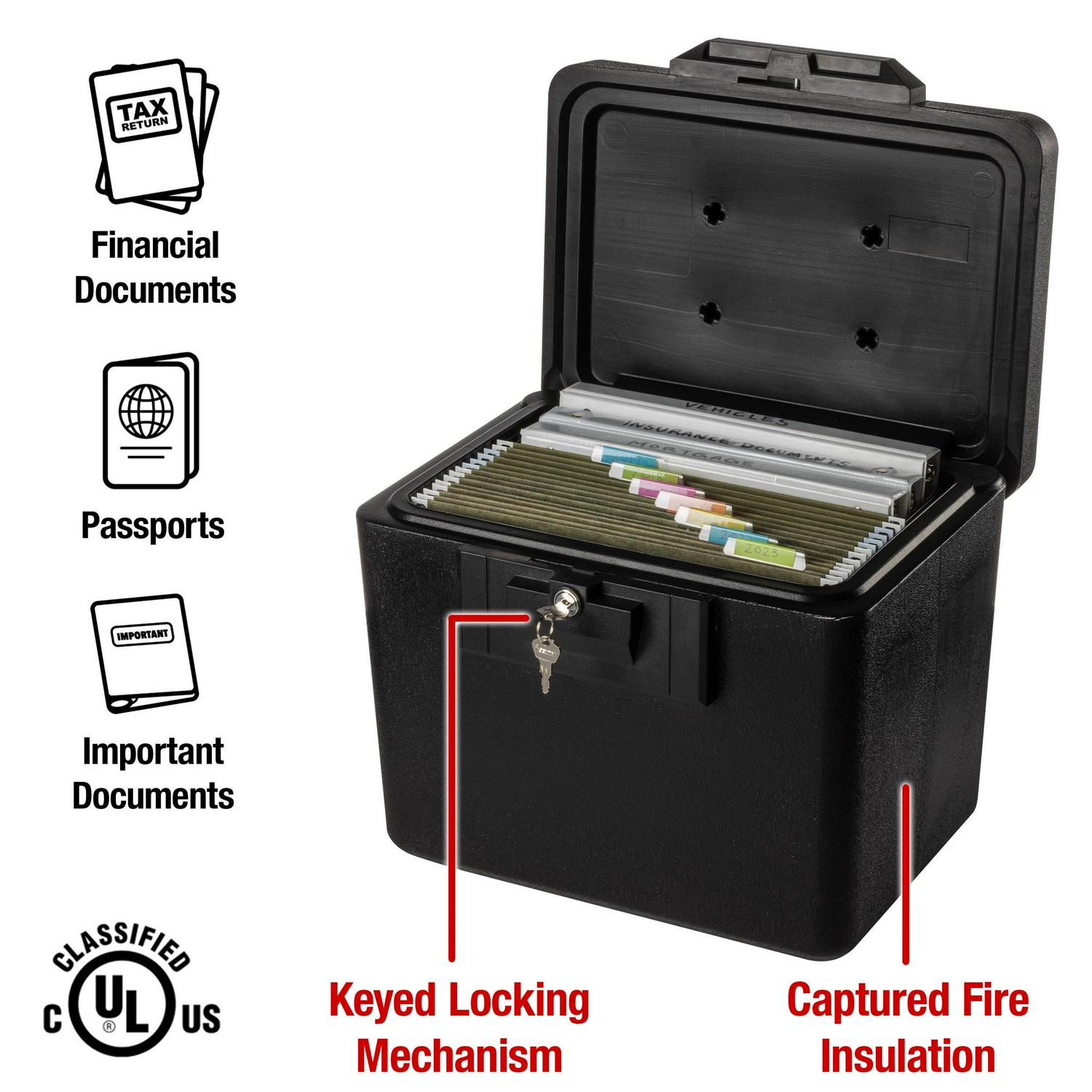 – Fire-resistant box is UL Classified to endure 1/2 hour at 1550°F to protect irreplaceable documents and valuables from fire