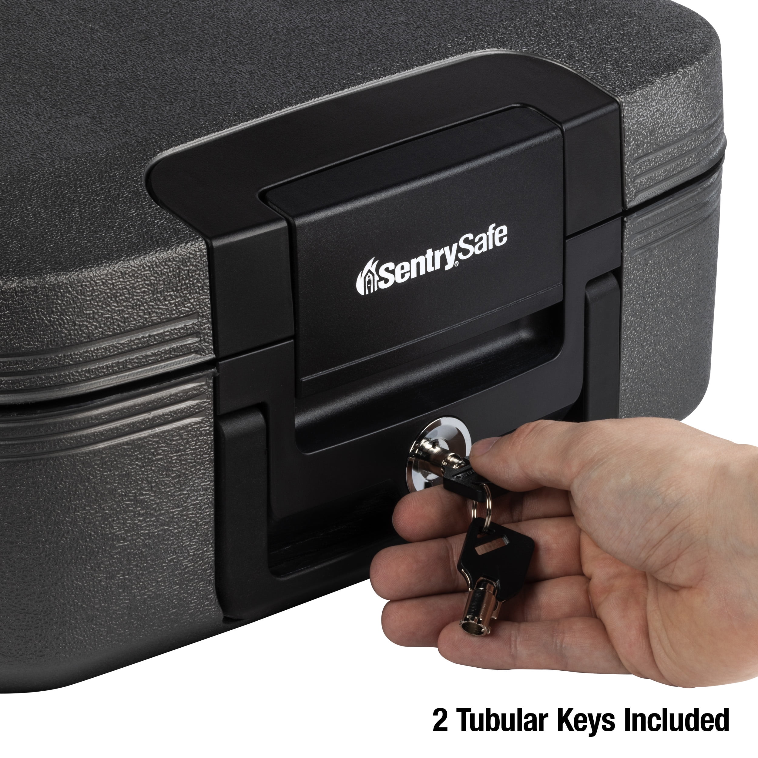 The SentrySafe CHW20201 Fire-Resistant and Water-Resistant Chest Safe with Key Lock provides quality protection for small valuables, digital media and important documents. It’s fire- and water-resistant and includes a carrying handle for easy grip and transportation. Keyed lock is secure to provide peace of mind. Fire-resistant up to 1,550°F for 12 hours to protect your valuables. Water-resistant to protect against flooding. Keep paper documents safe. A 0.28 cu. ft. interior has space for plenty of small valuables, digital media and documents. Carrying handle enable simple transportation. Backed by the manufacturer’s 1-year limited warranty. Exterior size: 6.6 in. H, 15.4 in. W, 14.3 in. D; Interior size: 4.4 in. H, 12.8 in. W, 8.5 in. D. Capacity: 0.28 cu. ft.; Weight: 20.400 lbs.