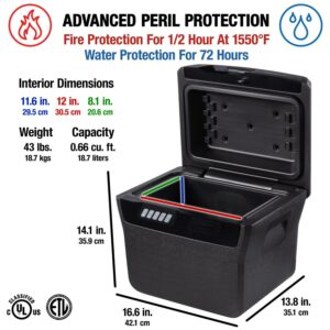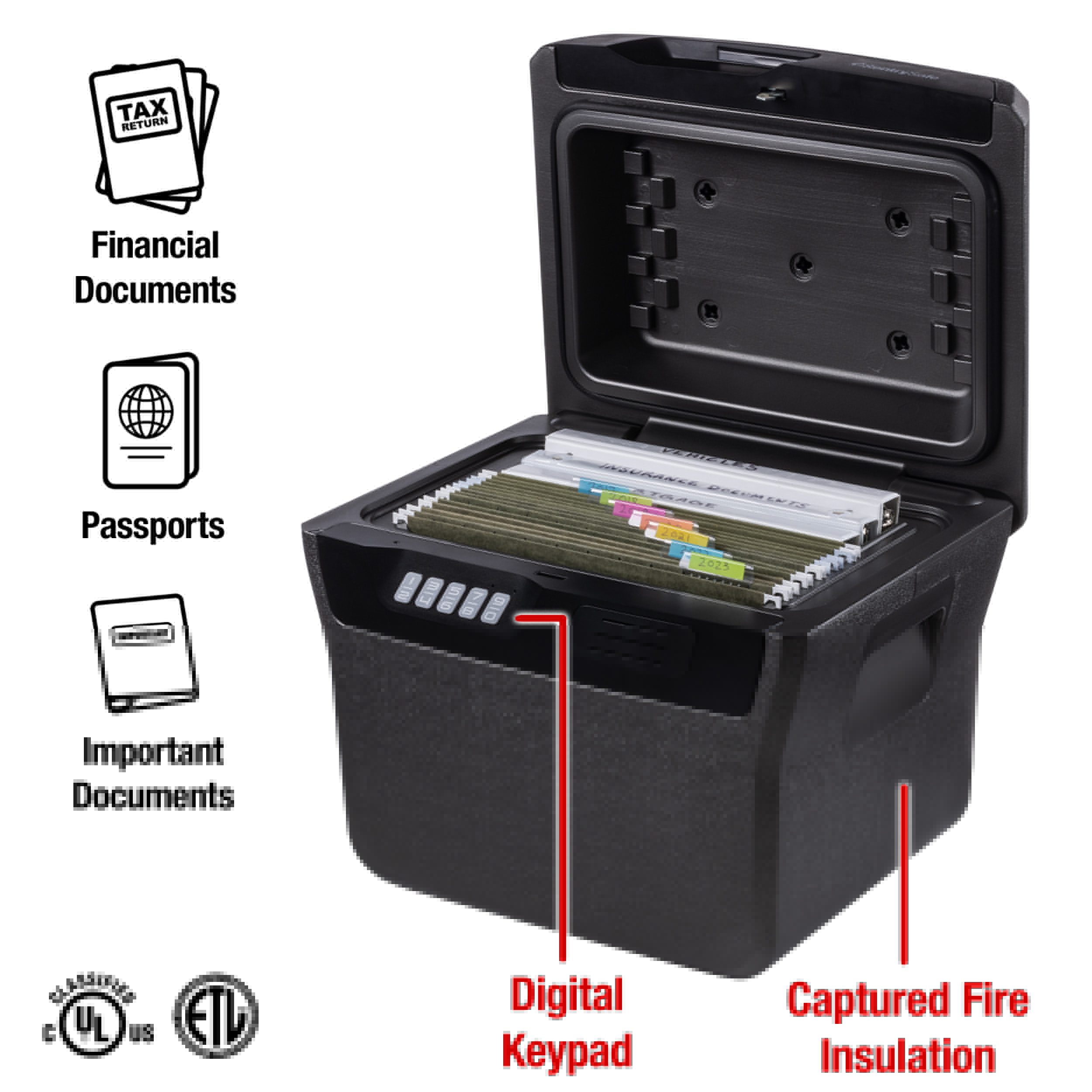 – Fire safe box is UL classified for fire endurance (1/2 hour at 1550°F) to protect critical home or business documents, records and valuables from fire damage; ETL verified (1/2 hour at 1550°F) to protect CDs, memory sticks, and other digital media