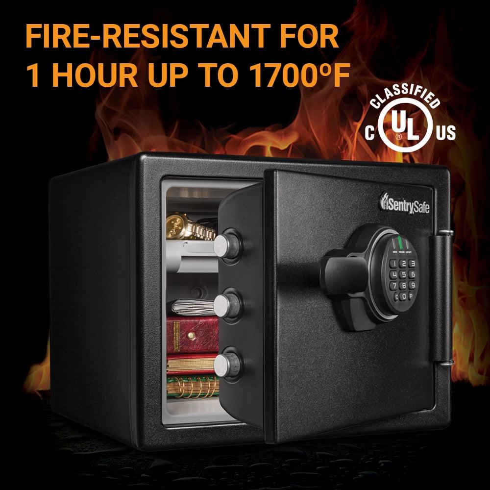 – Fire-resistant safe is UL Classified to endure 1 hour at 1700°F and keep interior temperatures safe for irreplaceable documents, valuables, DVDs, and USBs; ETL Verified to withstand a 15 foot fall during a fire and remain closed