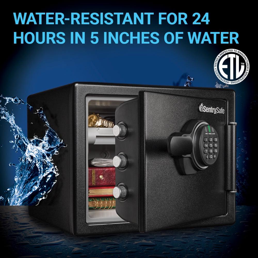 – Waterproof safe is ETL Verified for 24 hours of protection in water up to 5 inches deep offering peace of mind in the event of a flood
