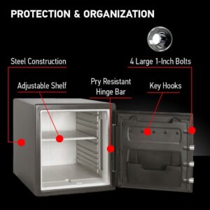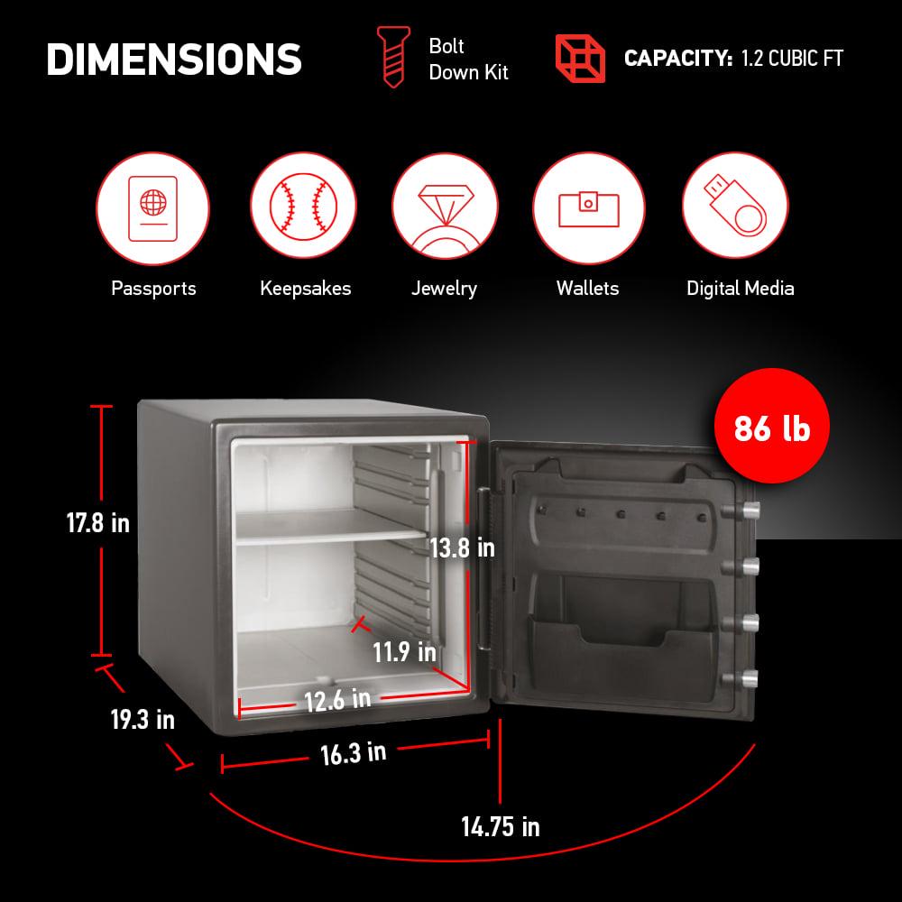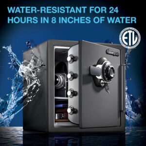 – Water-Resistant safe is ETL Verified for 24 hours of protection in water up to 8 inches deep offering peace of mind in the event of a flood
