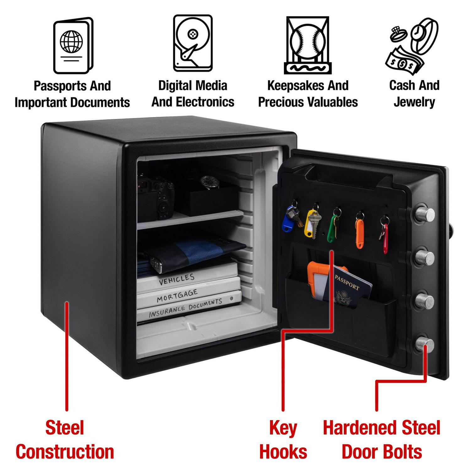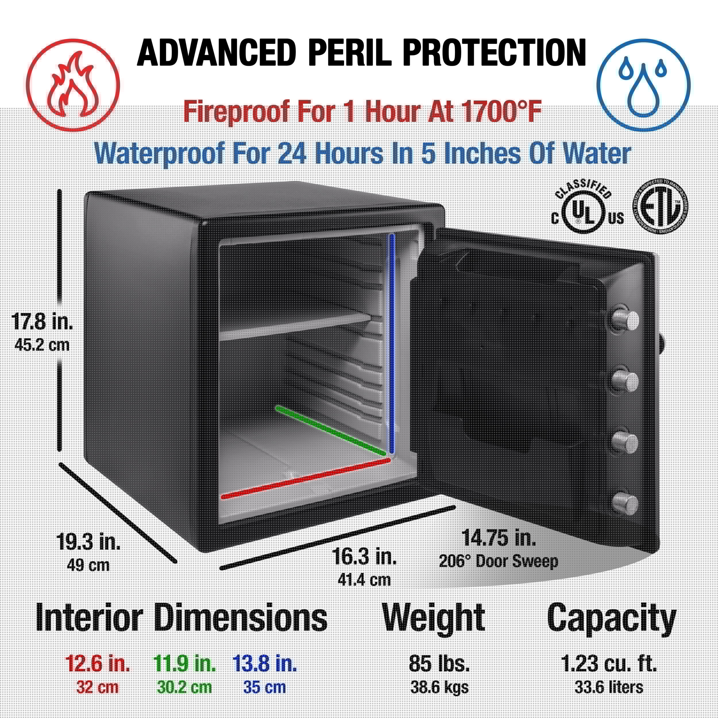 – Water-resistant safe is ETL Verified for 24 hours of protection in water up to 8 inches deep offering peace of mind in the event of a flood