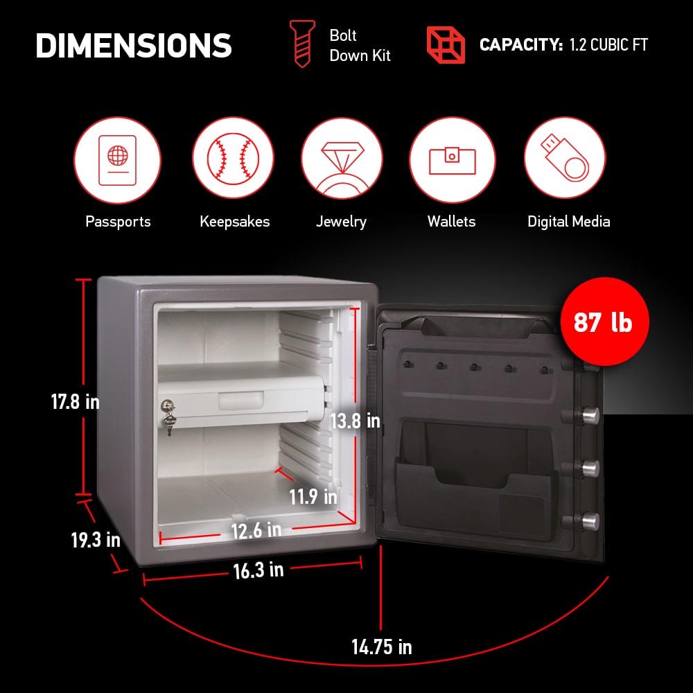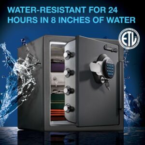 – Water-Resistant safe is ETL Verified for 24 hours of protection in water up to 8 inches deep offering peace of mind in the event of a flood