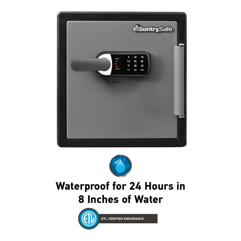 SentrySafe SFW123TSC fire and water-resistant safe is equipped with hidden keypad entry and a loud audible alarm that provides modern advancements to protect against theft. The safe also features four large live-locking bolts, bolt-down hardware, pry-resistant hinge bar and third party verified protection from fire or flood for a powerful storage solution for any home office. Fire-resistant safe is UL Classified to protect your valuables in a fire for 1 hour in up to 1700°F (927°C). Water-resistant safe is ETL Verified water resistance to protect your valuables in up to 8 inches of water for up to 24 hours. In addition, the safe includes a multi-positional shelf for flexible organization. Exterior dimensions: 17.8 in. H x 16.3 in. W x 19.3 in. D; Interior dimensions: 13.8 in. H x 12.6 in. W x 11.9 in. D; Capacity: 1.23 Cu. ft.; Weight: 85.730 Lbs.