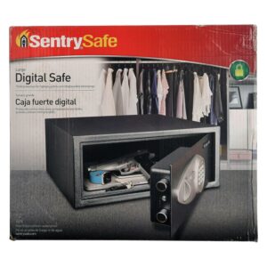 Give yourself piece of mind with the SentrySafe Digital Safe. This large safe protects your valuables from the hands of intruders or children. It features a digital lock for easy locking and security. The size is perfect for storing a gun or laptop. Keep your important paper documents, jewelry, or items of sentimental value protected in the case of a break-in. Use it as a safe spot to keep dangerous items or valuables out of reach from children in the home.