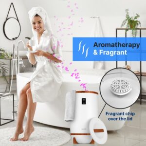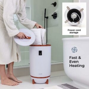 – CAPACITY OF A TOWEL WARMER: Comfier towel warmer with wide cavity measures 12″ x 12″ x 21.5″ -inches and can contain two big bath towels or one personal throw blanket, as well as wardrobes. The hot towel bucket may be used by the entire family
