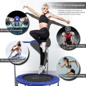 The SereneLife 40 Inch Adult Size Portable Folding Highly Elastic Fitness Jumping Sports Exercise Rebounder Mini Trampoline with Adjustable Handrail will keep you entertained while you bounce and work the stress away. Achieving a fit and healthy body takes a lot of work and time, with this trampoline you can have fun and enjoy while shaping your body to your desired figure. This highly elastic bouncer includes an adjustable padded handrail, safety pad, and a strong frame, so you can be rest assured that you’ll be safe while you workout. This trampoline is a unique and fun way to burn some extra calories, strengthen your core, and release stress. This bouncer is also great for improving balance and coordination. With a heavy-duty and durable construction, this exercise trampoline can support up to 220 pounds, allowing you to endlessly bounce without damaging it or causing sudden accidents. To top it all off, this trampoline is a total space saver and very easy to assemble and disassemble. Once you’re done with your workout, fold it away and store it in the included kitbag to put away. This great fitness accessory can be used indoors or outdoors, so jump on this deal and snag a SereneLife 40 Inch Adult Size Portable Folding Highly Elastic Fitness Jumping Sports Exercise Rebounder Mini Trampoline with Adjustable Handrail today!