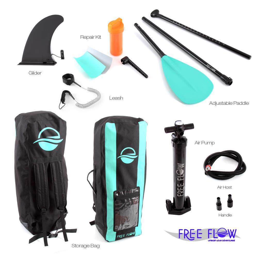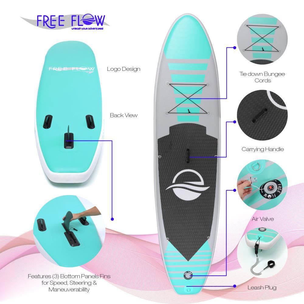 The SereneLife Free-Flow Inflatable SUP – Stand Up Water Paddle-Board – Single Person Stand-Up Paddle-Board (SUP) – Water-Safe: Floating & Inflatable Platform Base – Water-Ready: Includes Everything Needed to Paddle – Universal Board Design for Children, Teens & Adults – Lightweight & Hassle-Free Setup for Quick Water Fun – Marine Grade Water-Resistant and Corrosion-Resistant Construction – Portable Paddle-Board Deflates & Roll-Ups for Easy Storage & Transport – Features (3) Bottom Panel Fins for Speed, Steering & Maneuverability – Extra Long 10.5 ft. Style for Stability – Paddle at the Lake, on the River or in the Ocean! – What s in the Box: – Paddle-Board – Oar Paddle – Manual Air Pump – Coiled Ankle Cuff Safety Leash – Patch Repair Accessory Kit.