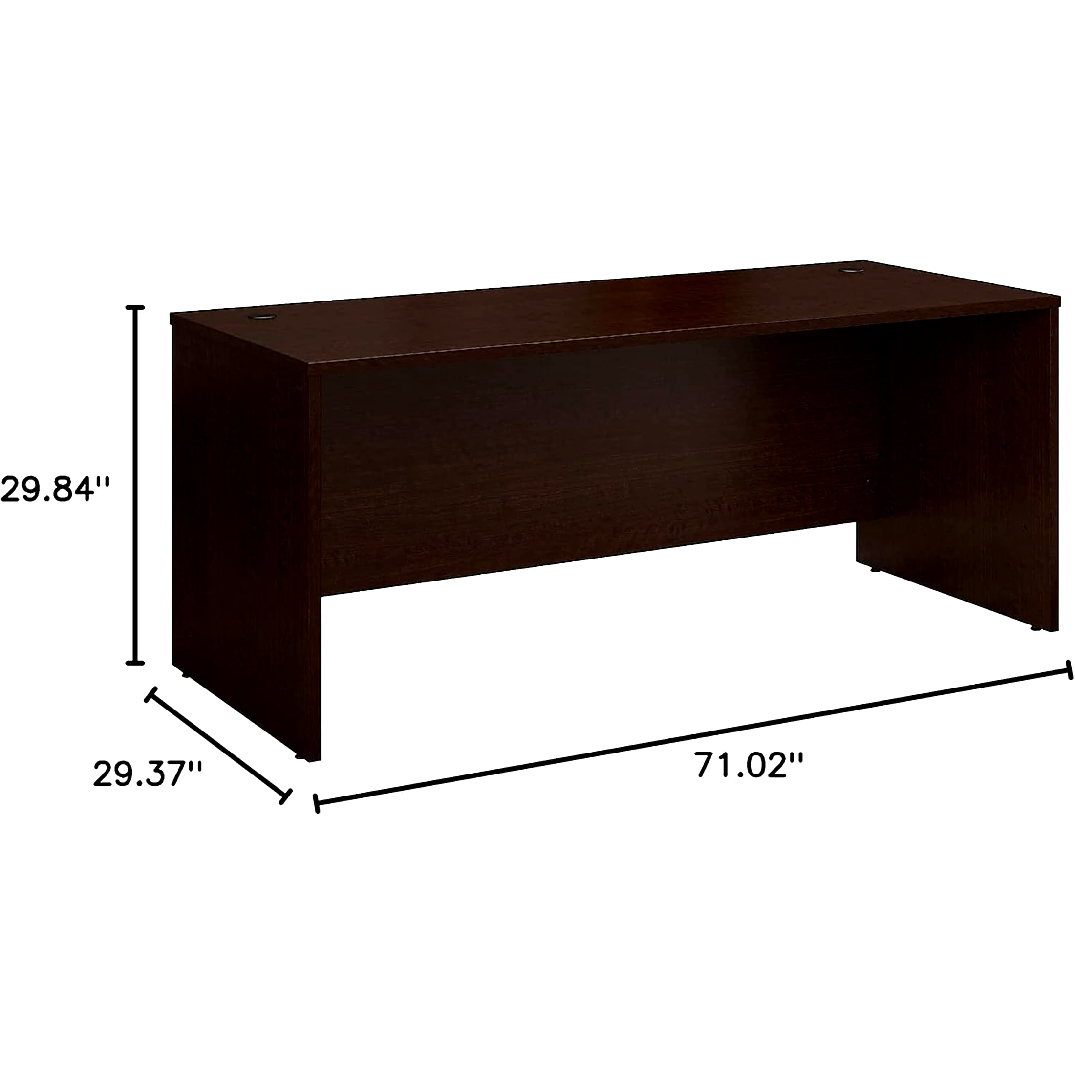 Get a wide work surface and opportunities for expansion with the Bush Business Furniture Series C 72W x 30D Office Desk. Spread out with your paperwork, computer, phone and more on the rugged thermally fused laminate surface while concealing your cables in wire management grommets for a clutter-free work area. Depend on continued quality with a heavy-duty design, thick end panels and tough edge banding. Use the Office Desk by itself or expand your workspace with matching Series C products to form an L or U Shaped configuration. Complete your office by adding a Hutch, Mobile File Cabinets, Keyboard Tray or Pencil Drawer (all sold separately). Extended modesty panels and clean lines make a lasting impression. The options are endless with Series C. This affordable furniture boasts quality craftsmanship to withstand the rigors of a 40-plus hour work week and comes with a 10 Year Warranty. Seven stylish finishes blend seamlessly in any environment. Multiple layout options meet the needs of numerous workspaces, from the private or home office to reception areas and conference rooms. Series C evolves with your preferences, allowing you to reconfigure your workspace as required with a complete line of coordinated commercial office furniture. Features: Finish: Mocha Cherry Material: Laminate Over Engineered Wood, Steel, Metal, Plastic, Thermally Fused Laminate Over Engineered Wood, Wood Thermally fused laminate work surface, rugged edge banding and sturdy end panels fend off scratches and damage Wide Desk surface offers space to spread out and integrated wire management to conceal your cables Accepts Return or Bridge on right or left side to form L or U Shaped configurations Use as a standalone Desk or expand your workspace with a 72W Hutch, Pedestals, Pencil Drawers and Keyboard Trays (all sold separately) Series C complements your office with clean lines, extended modesty panels and 7 finish options Meets ANSI/BIFMA quality test standards for performance and safety Assembled in the U.S.A. with U.S.A. & Imported Parts Commercial quality backed by 10 Year Warranty Specifications: Product Dimensions: 29.84″ H x 71.1″ W x 29.37″ D Product Weight: 132 lbs Product Color: Mocha Cherry