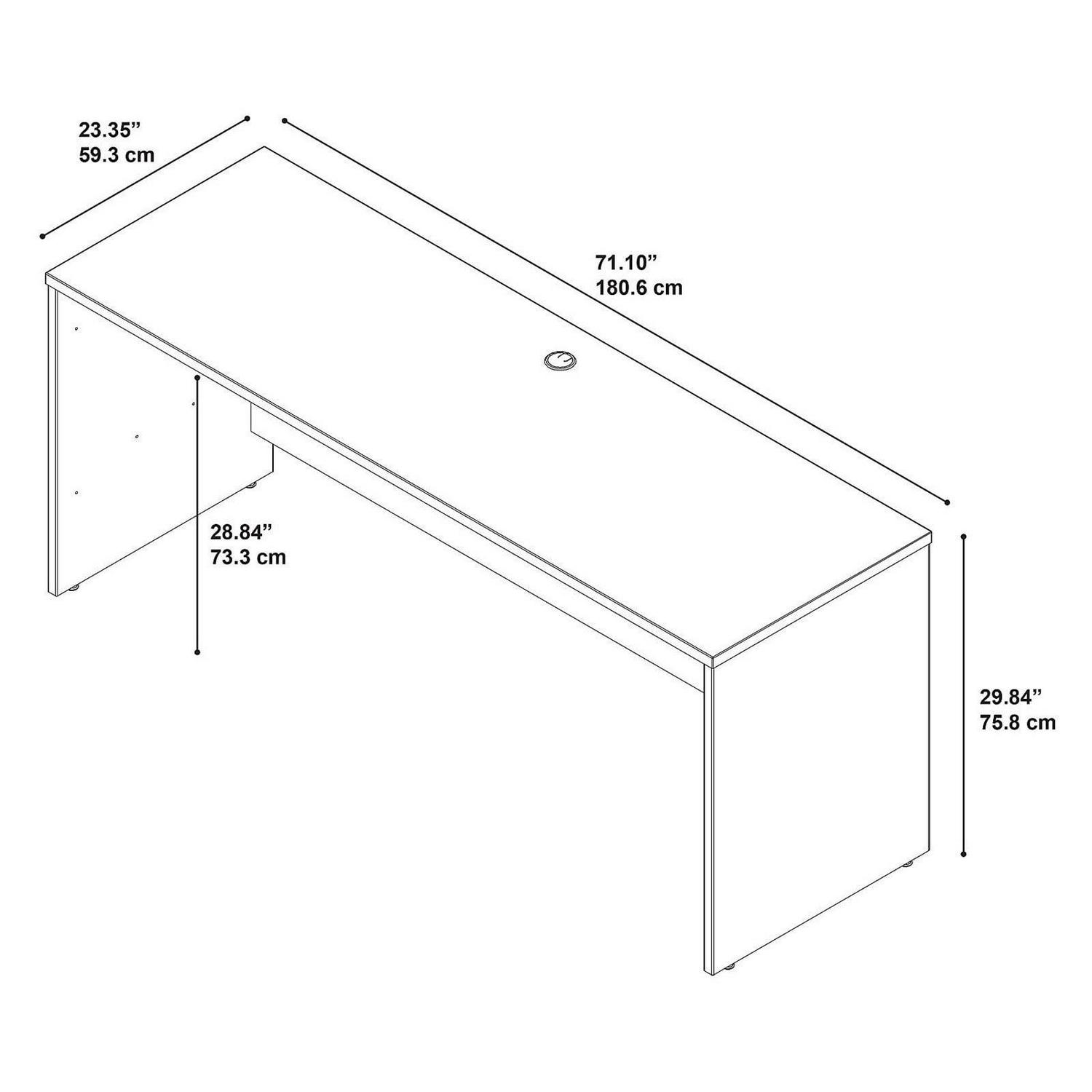 Durable thermally fused laminate work surfaces feature superior resistance to scratches and stains.All work surfaces and leg end panels are 1 in. thick.Attaches to desks on right or left with one full-depth end panel and one narrow support panel included.Freestanding when two full-depth panels are installed.Accepts 72 in. Hutch.Accepts Pencil Drawer or Keyboard Trays in center, right or left positions.Accommodates 2-Drawer or 3-Drawer Pedestals.