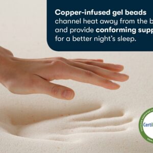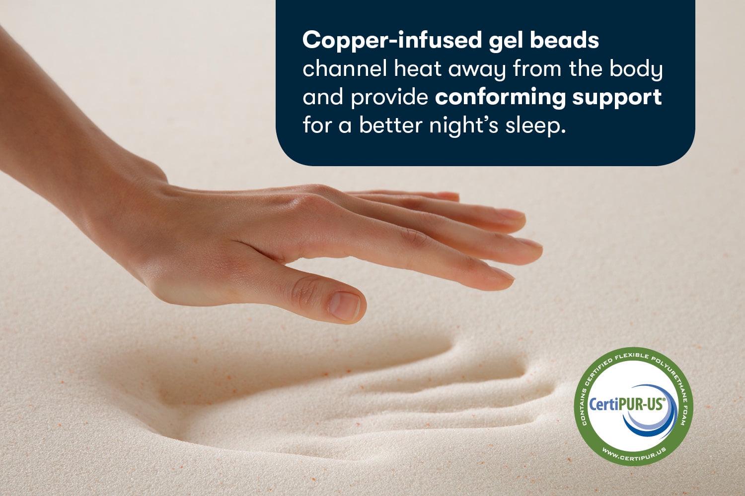 – Copper-infused gel beads channel heat away from the body and provide conforming support for a better night’s sleep.
