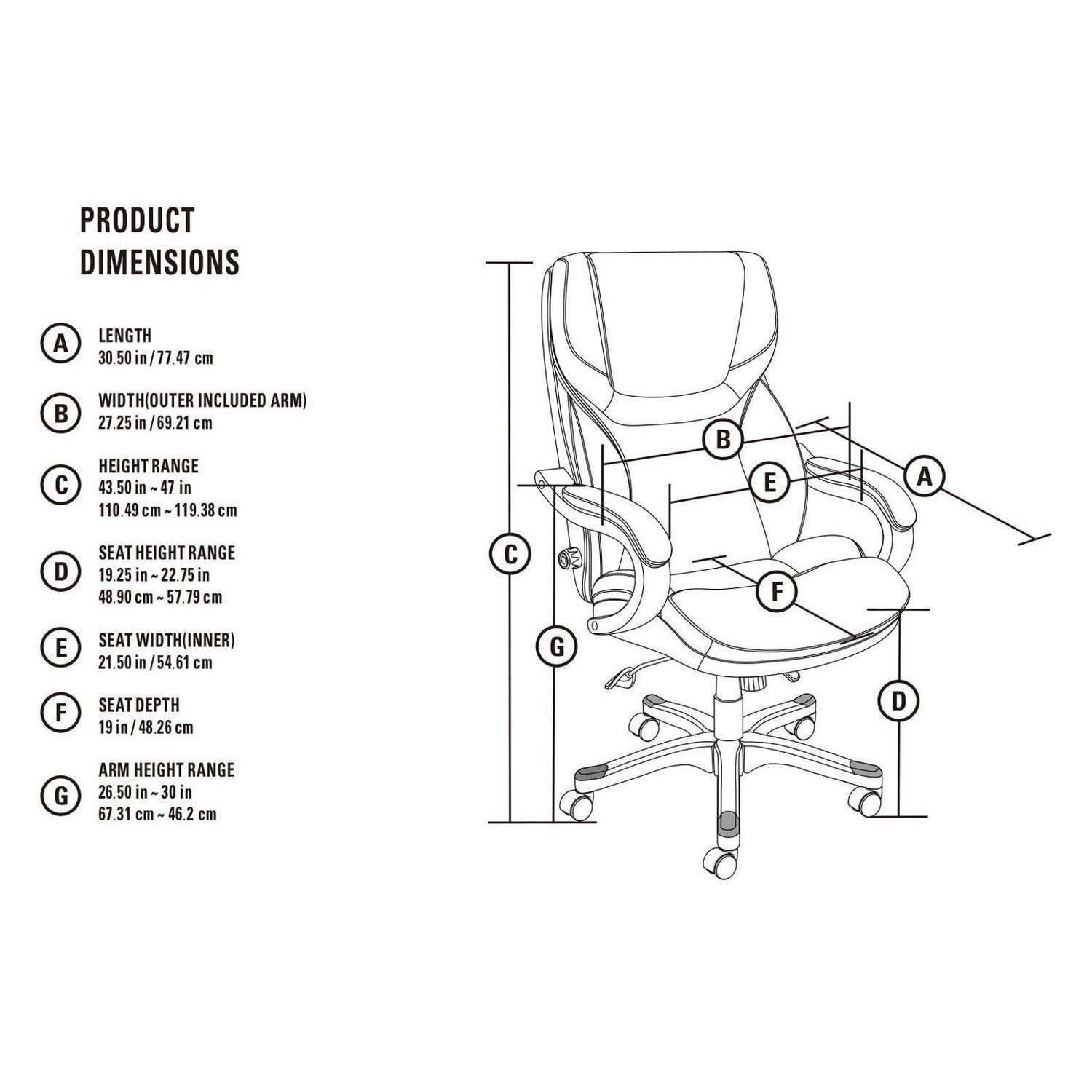 - Features: Executive, Arms, Ergonomic, Swivel, Commercial-Grade, Adjustable Height