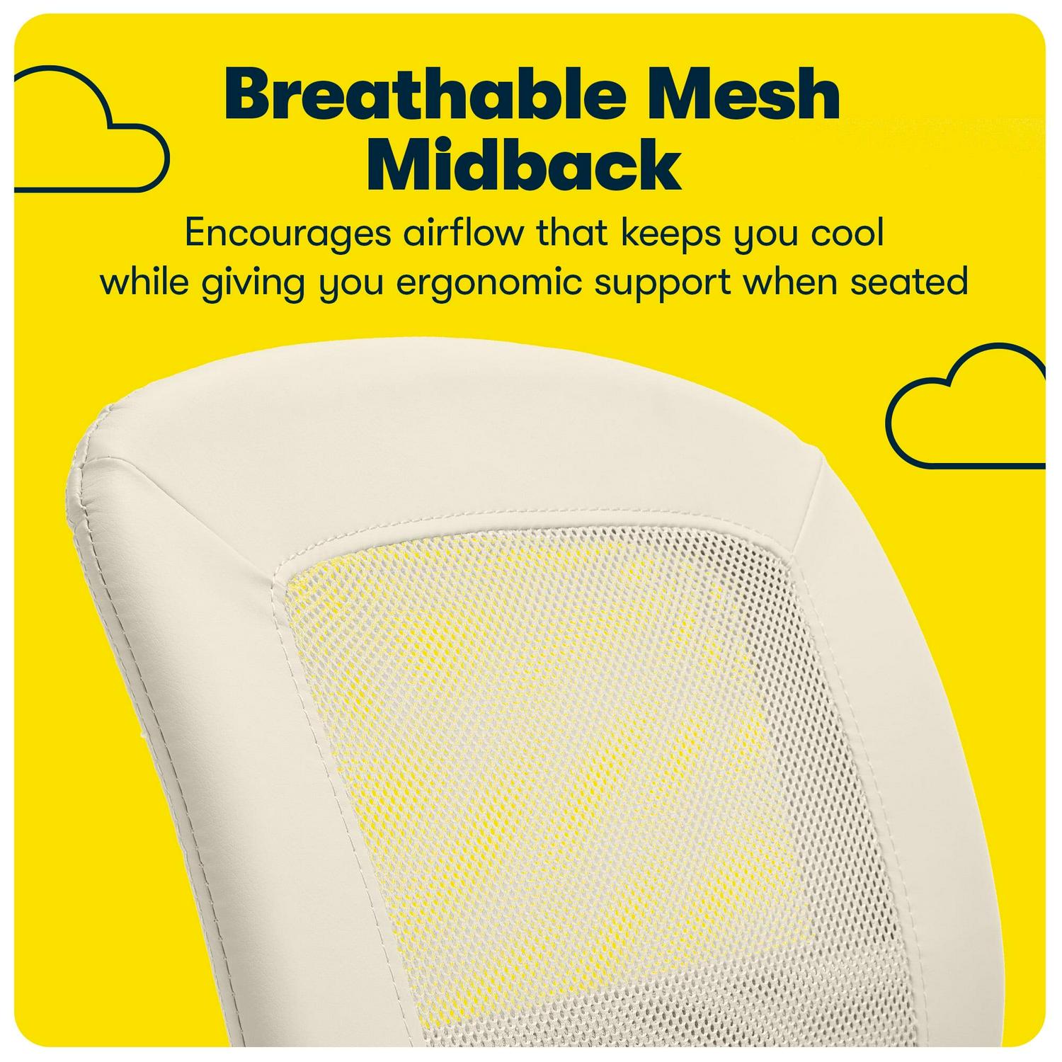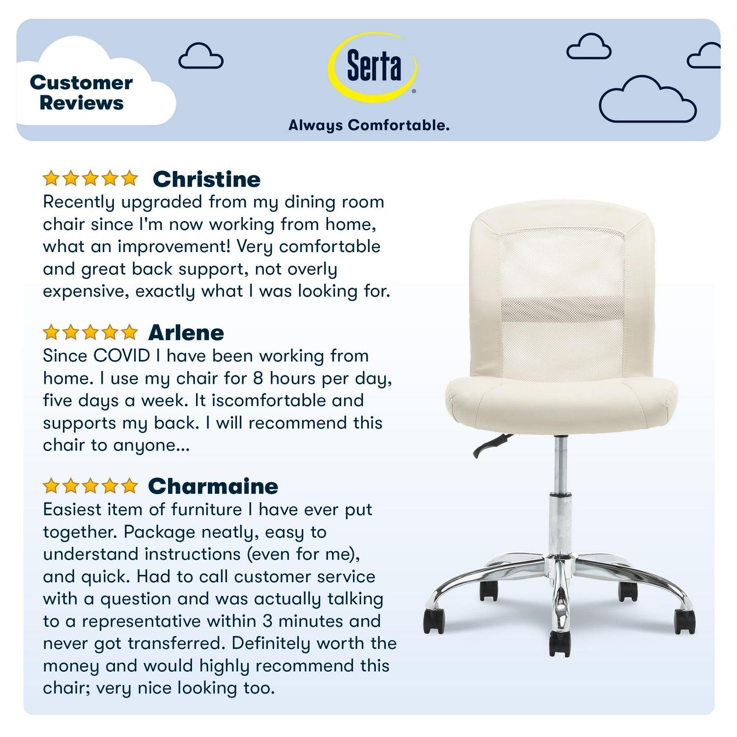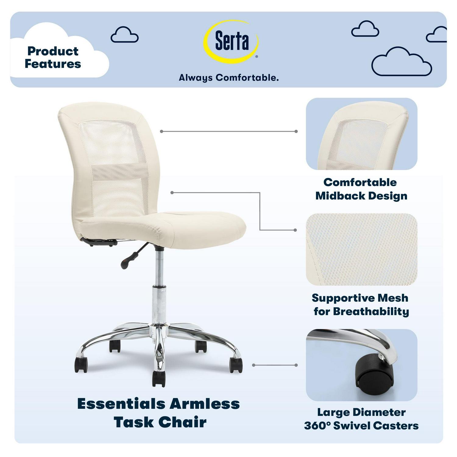 Serta Essentials Faux Leather Low-Back Office Chair with Back Mesh, Cream