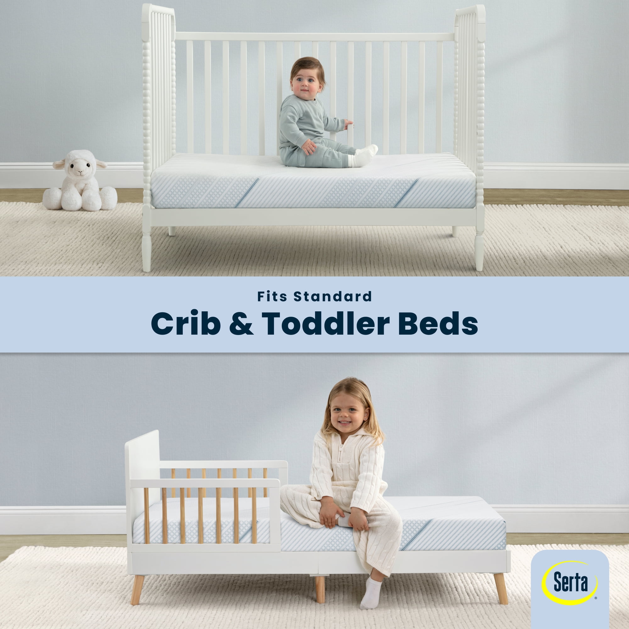 SUPPORTIVE FOAM CORE: Foam core is made with plant-based soy and delivers the perfect level of comfort and firmness for infant and toddlers BACK BY WARRANTY: Mattress is backed by a 5-year limited warranty CERTIFIED SAFE: GREENGUARD Gold certified for indoor air quality and low chemical emissions to help create a healthier sleep space | We use CertiPUR-US approved foams without PBDE flame retardants, mercury, lead & other heavy metals | JPMA certified This mattress is free from added toxic fire retardants, lead and phthalates | Tested to meet or exceed all applicable JPMA, CPSIA and ASTM safety testing standards | 100% cotton fire protection meets or exceeds flammability standards MATTRESS-IN-A-BOX: Mattress ships compressed in a lightweight box for your convenience | Open and unroll mattress within 2 weeks of purchase, may take up 48 hours to fully expand | Zipper cover is not intended to be removed—zip shut after expansion FITS STANDARD FULL-SIZE CRIBS & TODDLER BEDS: This mattress is designed to fit any standard full-size crib or toddler bed | Size: 52”L x 27.5”W x 5”H